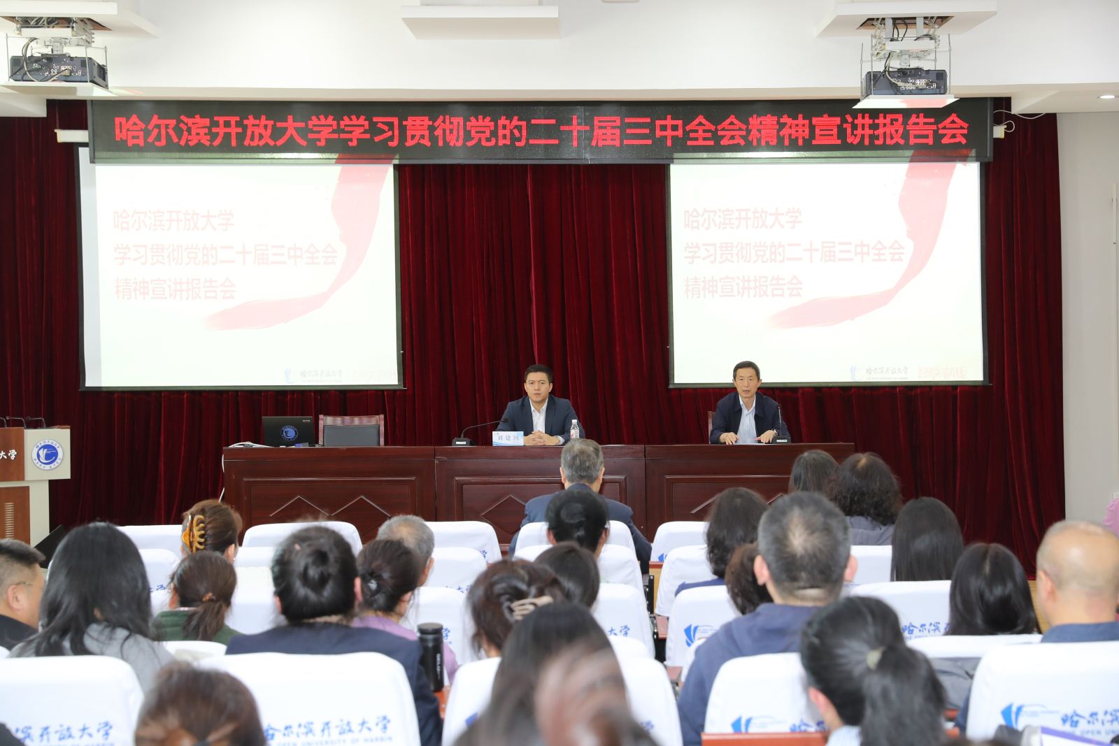 为认真学习贯彻党的二十届三中全会精神,教育引导广大教职工深入理解、全面把握全会精神实质,9月27日下午,学校召开学习贯彻党的二十届三中全会精神宣讲报告会。校党委书记刘建国做专题宣讲,学校领导、全体教职工参加报告会,会议由党委副书记陈永昕主持。