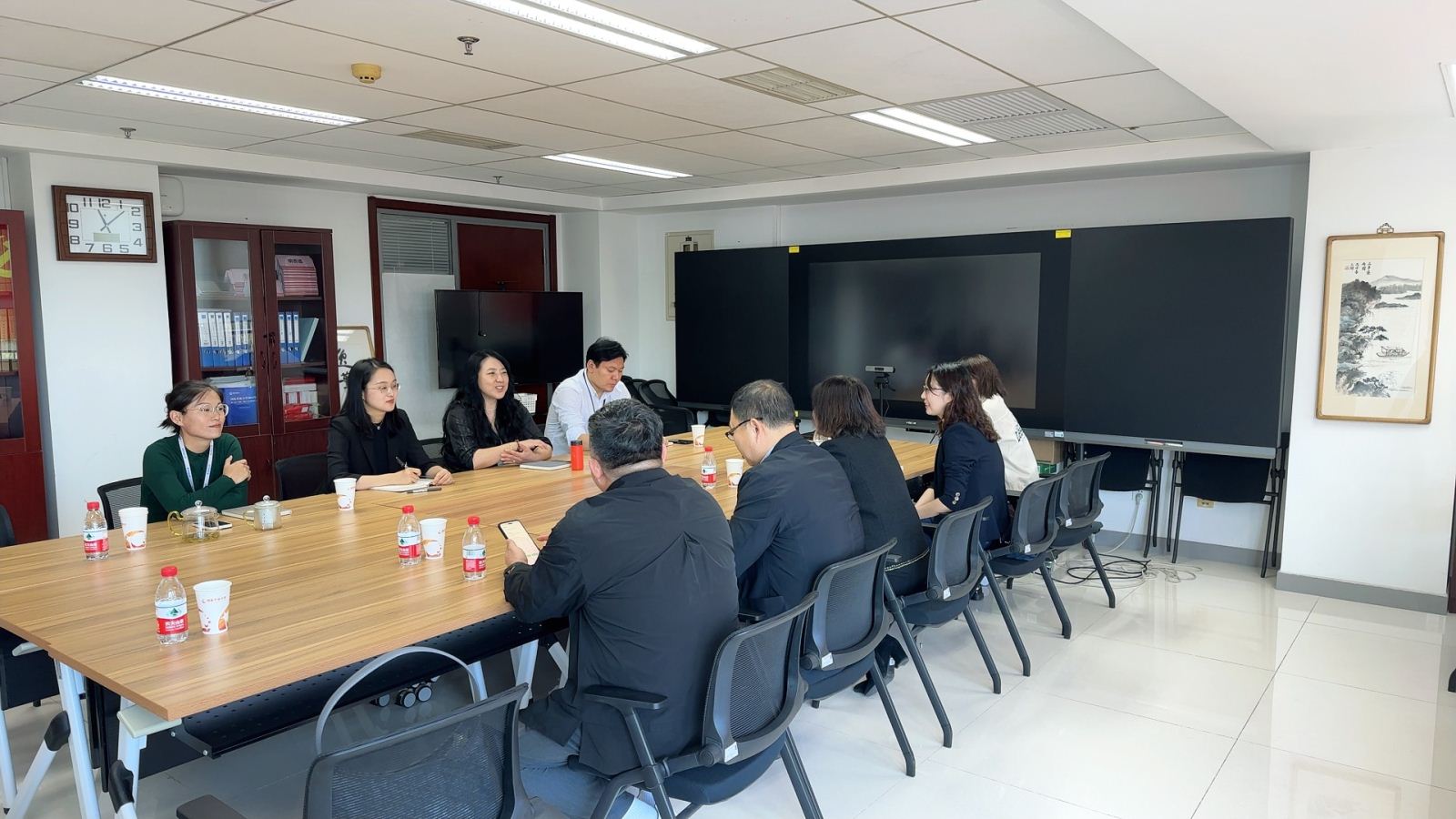 副校长张莉先后与国家开放大学教务部部长古小华、质量监控部部长金琰、学习资源部部长李薇、人文学院院长韩仪进行了深入交流,就所关注的如何加强教学改革创新,进一步提升开放教育的社会认可度和影响力,如何加强质量监控,确保开放教育的教学质量以及如何加强学习资源建设,提升学生的学习体验和效果进行了深入探讨。