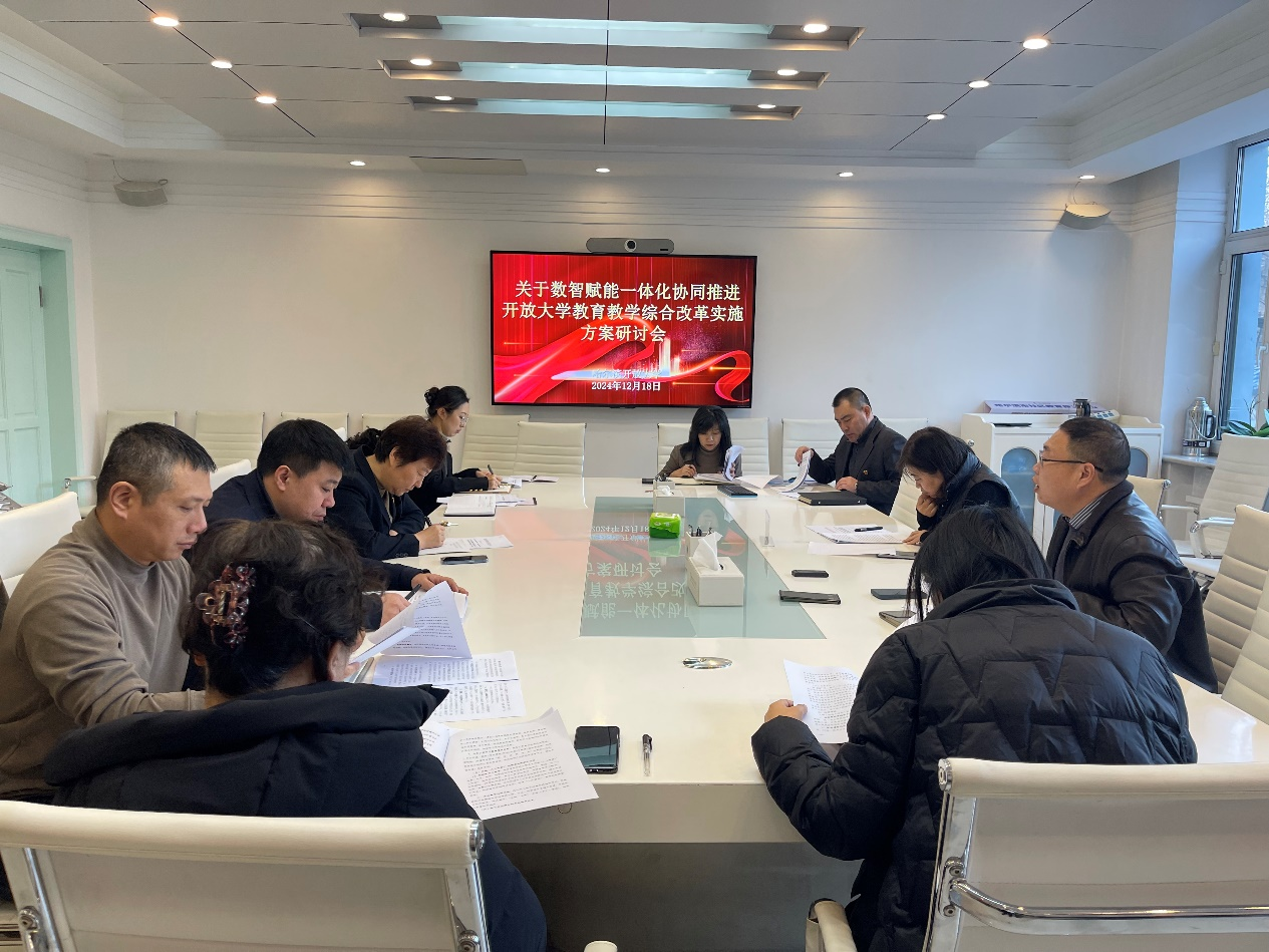 参会部门负责人围绕国家开放大学《关于印发〈数智赋能一体化协同推进开放大学教育教学综合改革实施意见〉的通知》(国开教[2024]2号),结合学校实际情况及本部门具体工作开展研讨,逐项讨论分析工作方案提出意见。