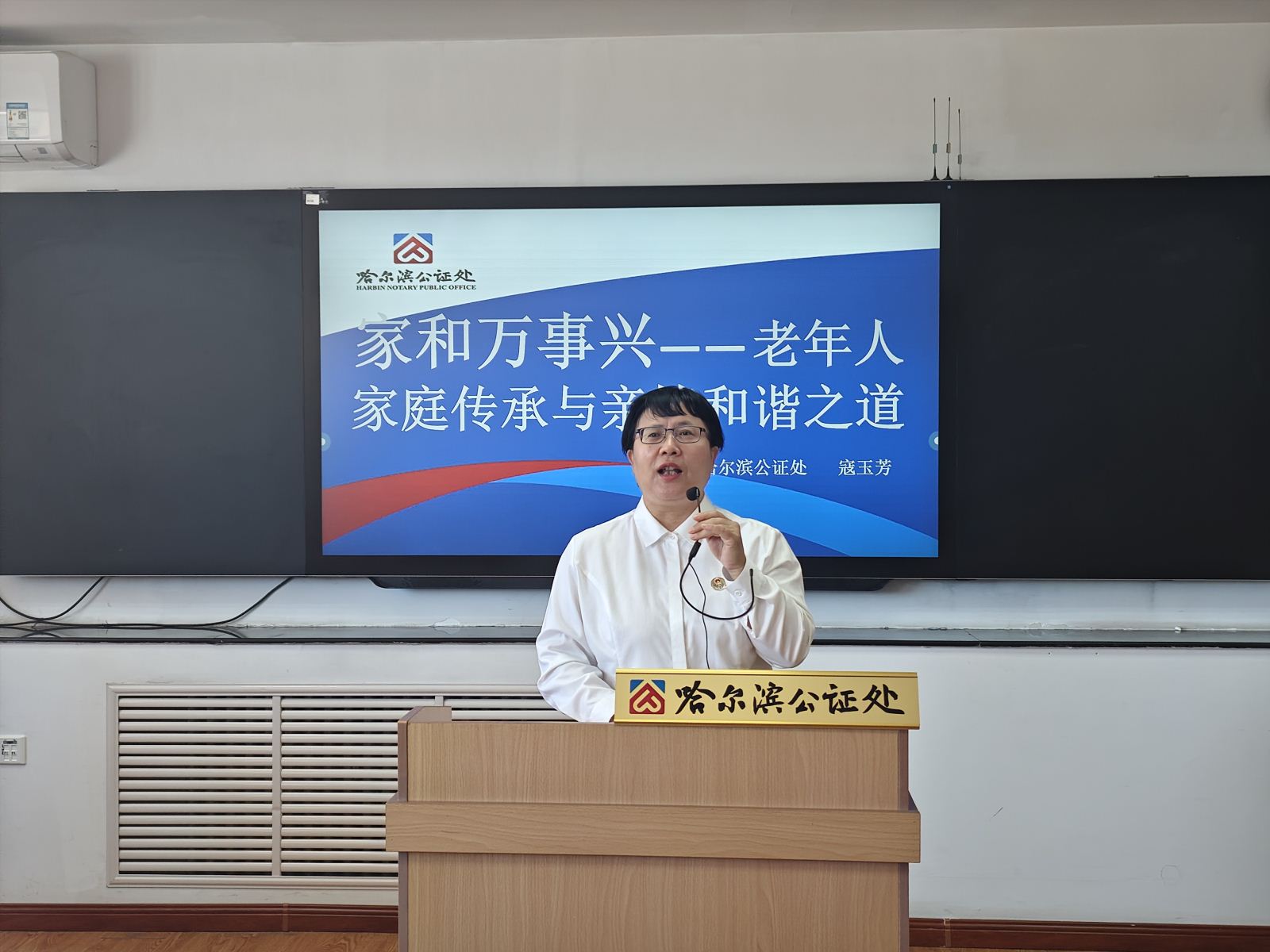 为深入贯彻落实“积极应对人口老龄化”国家战略,把学校老年教育品牌做深做实,9月17日,爱游戏(ayx)中国官方网站联合哈尔滨公证处、哈尔滨市老年学学会,在黑龙江省老干部大学颐园街校区共同推出银龄法治课堂——《家和万事兴:老年人家庭财产传承与亲情和谐之道》。