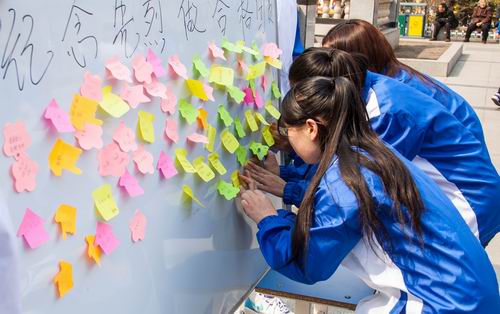 活动中,学生会同学介绍了赵一曼生平,朗诵诗歌《赞赵一曼》,全体同学在赵一曼像前默哀,并重温入团誓词。最后,伴着激昂的团歌,同学们将活动感触和对未来的宣言写下来,贴到活动展板上。