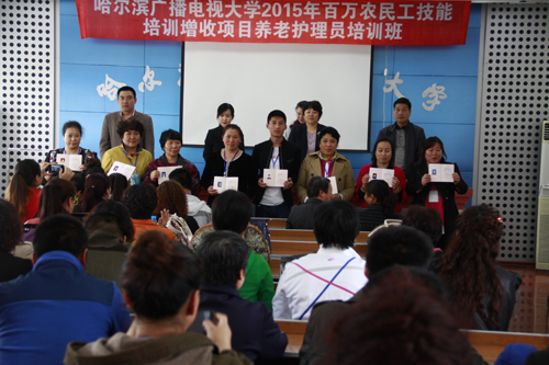 养老护理员专业100名学员通过对养老护理人员职业道德和基本技能等理论知识的学习,在哈尔滨市安康社会福利院进行专业技能的实操,圆满地完成了此次培训任务,并取得了结业证书。