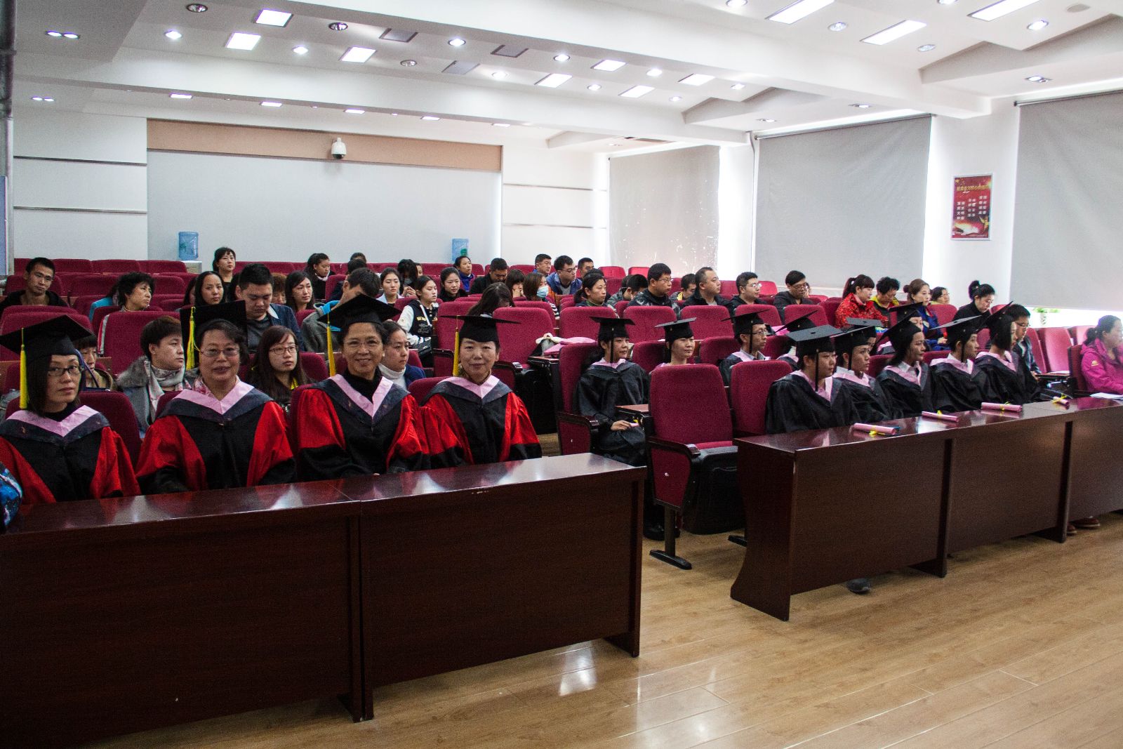学士学位获得者2011秋行政管理本科刘研同学和2015秋汉语言文学本科王成果同学代表学生发言。理工教研部赵振老师代表教师发言。