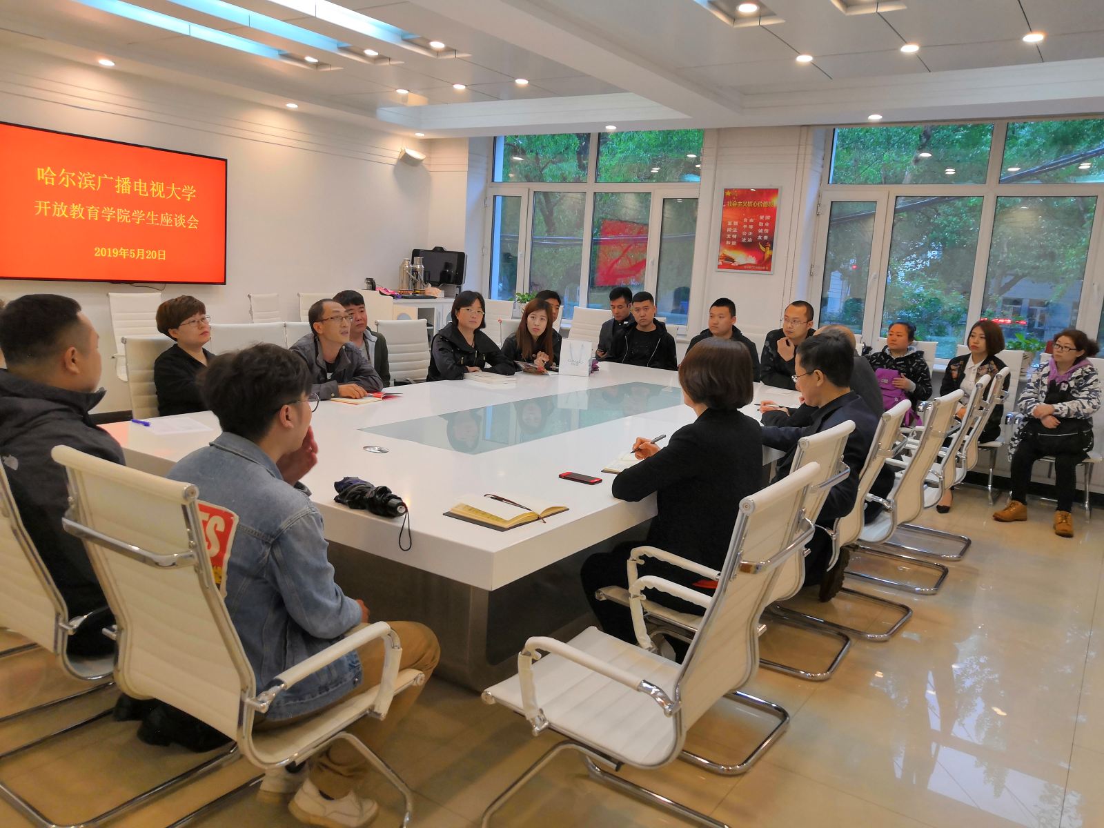 5月20日、21日晚,开放教育学院为了切实了解同学们在学习生活中遇到的问题,并针对问题集思广益寻找对策,分别组织在校学生与往届未毕业学生召开了两次“师生交流座谈会”。副校长白宝彦、理工教学部主任尚伏雨、人文教学部主任薛慕雪、开放教育学院院长孙连娟及各专业学生代表参加了座谈。