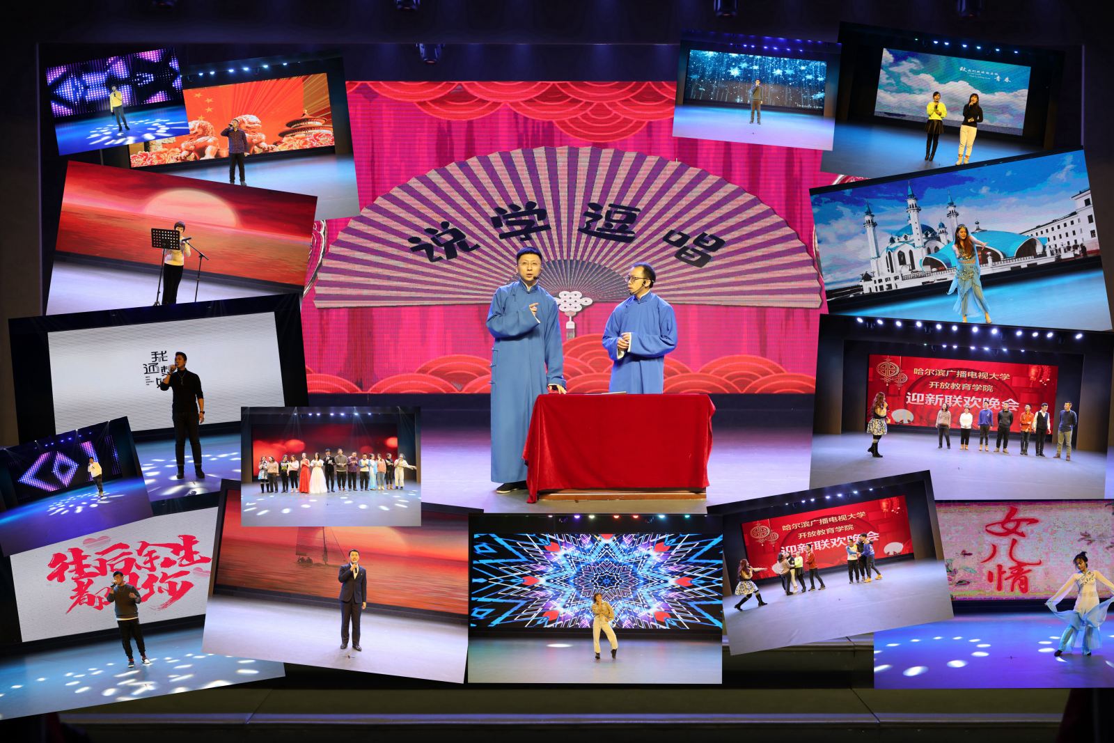 研读韶华,骏马腾飞成壮举。梦扬电大,灵羊起步赴新程。11月27日,开放教育学院在龙江剧院隆重举行了迎新联欢晚会。师生欢聚一堂在欢笑中共同迎新春,整场晚会气氛热烈,精彩纷呈。晚会正式开始前循环播放学校宣传短片和一年来学院组织的各种校园文化活动及优秀毕业生风采等,罗琦同学的《万水千山总是情》拉开了晚会的序幕。