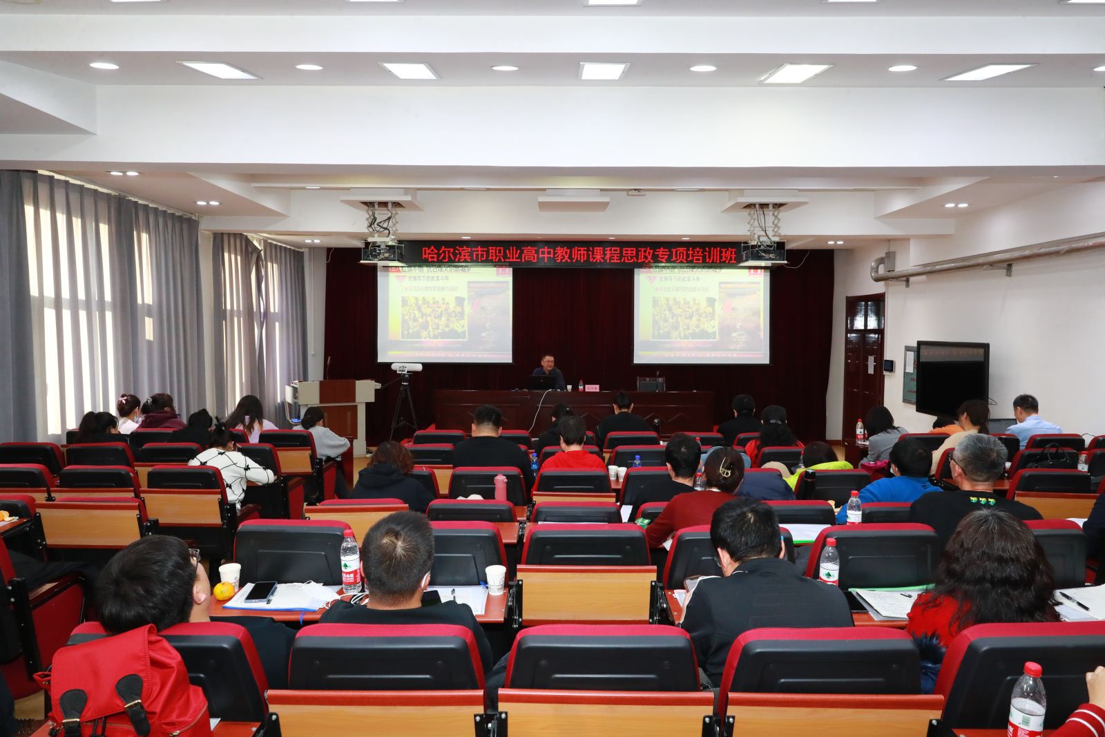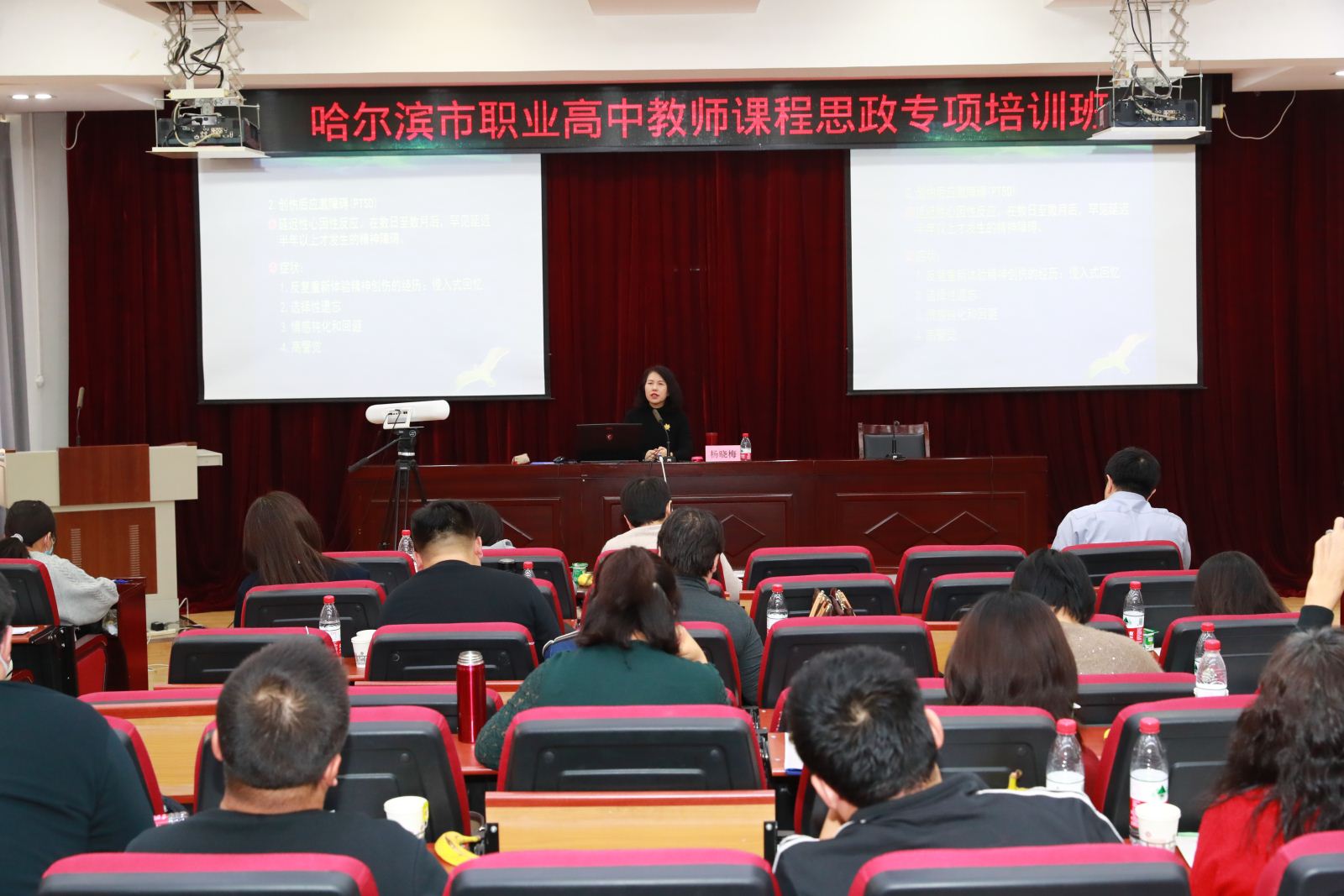 为全面落实习近平总书记在全国教育大会和学校思想政治理论课教师座谈会上的重要讲话要求,进一步提升推动新时代思想政治教育守正创新的政治自觉与工作能力,提高我市职业高中教师综合素质和教育教学水平,推进职业高中教师思想政治理论和课程思政建设。11月23、24日,爱游戏(ayx)中国官方网站联合哈尔滨市教育研究院共同开展“哈尔滨市职业高中教师课程思政专项培训班”,共有100人线下培训,近1900人在线观看讲座。