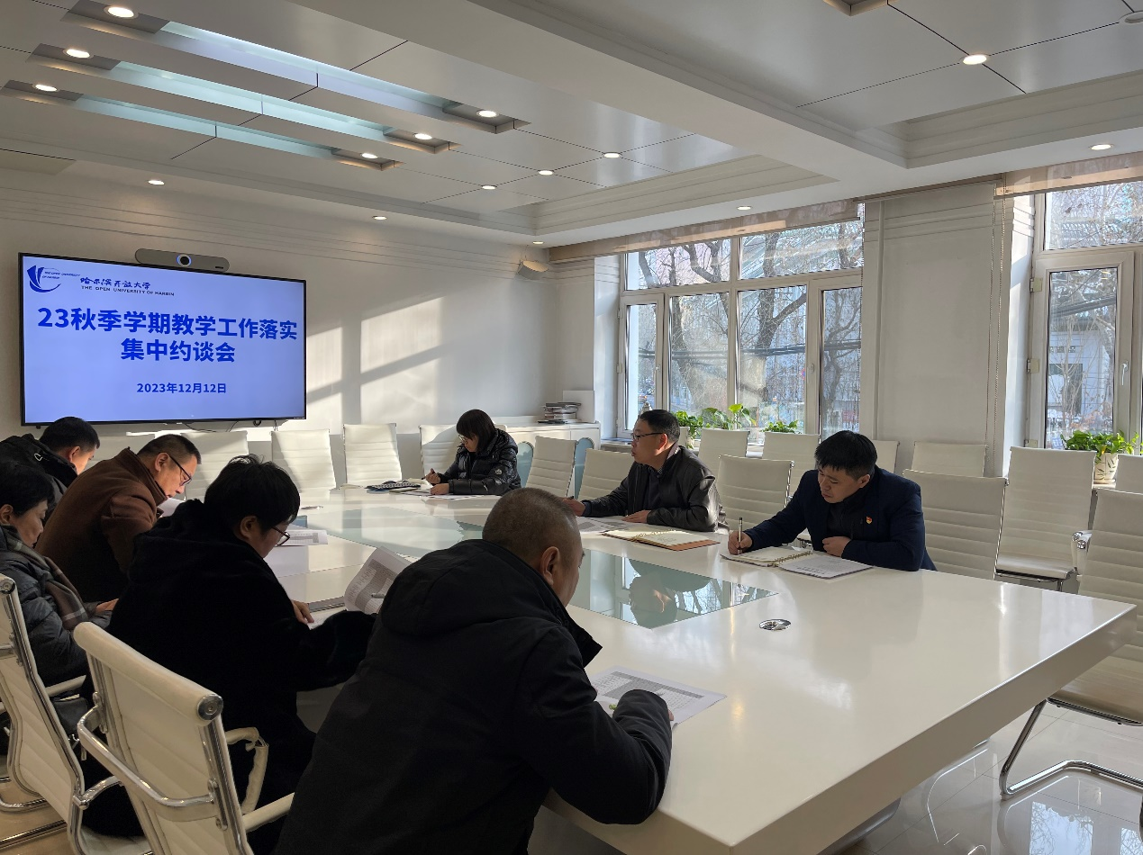 方天宇处长详细介绍了2023秋季学期各办学单位网上教学工作落实情况,重点强调网上教学落实工作的重要性,要求所有办学单位要充分利用好网上学习资源,认真组织学生进行网上学习,提高教学质量。在交流座谈时,与会人员研讨了在教学工作落实过程中遇到的困难和解决途径。