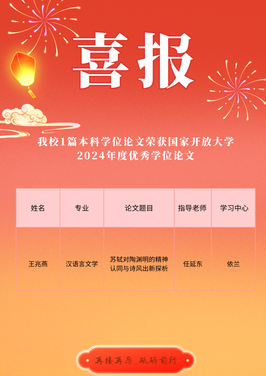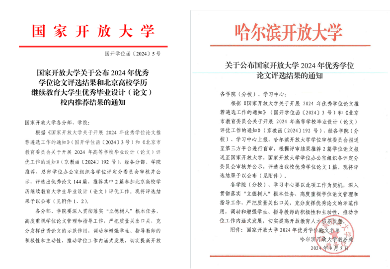 喜报!爱游戏(ayx)中国官方网站1篇本科学位论文获得国家开放大学2024年度优秀学位论文
