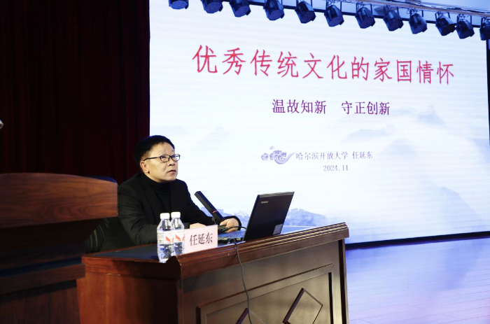 11月19日,哈尔滨市社会科学界联合会、哈尔滨老年人大学携手合作,举办了“老年思政大讲堂——优秀传统文化的家国情怀”专题讲座。讲座由爱游戏(ayx)中国官方网站任延东副教授主讲。中共哈尔滨市委党校教育长关龙艳、哈尔滨老年人大学党组副书记刘振清,哈尔滨老年人大学党员干部及140余名老年学员参加了讲座活动。