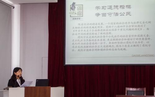 本次道德讲堂由郭秀芳老师主持,在全体教师合唱《公民道德歌》的歌声中拉开帷幕,大家观看了人民警察木拉提的短片。短片结束后,教师代表发言表示,正是无数木拉提一样的人民警察付出了青春、鲜血乃至生命,才会有祖国和人民的安宁与快乐。让我们向他们致敬,更向他们学习,学习他们捍卫法律尊严的执着和勇敢,学习他们奉献祖国的无私与坚定。在诵经典环节,全体教师在郭老师的带领下学习了两句与法律相关的经典名句,一句是:国无常强,无常弱。奉法者强,则国强;奉法者弱,则国弱。另一句是:治人者,法也;守法者,人也。人法相维,上安下顺。在立自身环节,开放教育学院法律教研部的顾尧老师就如何做一个守法公民进行了讲解并提出建议,使大家对做好一名守法公民有了更加明确的认识。最后,支部为每一位老师送上了普法宣传材料。