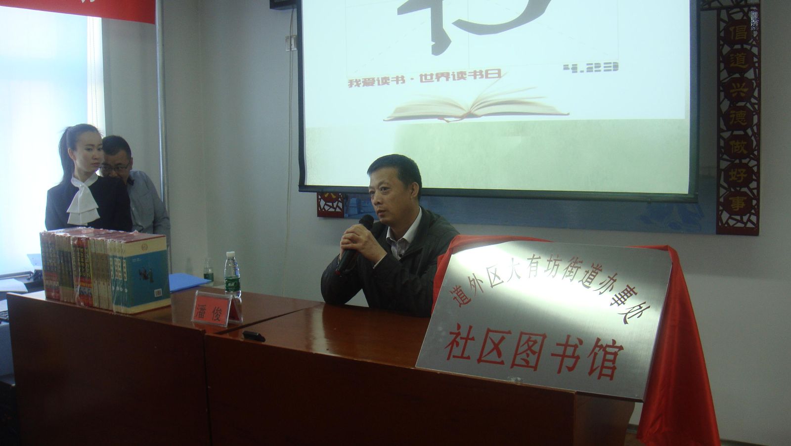 2015年4月22日是第20个世界读书日,全国上下都在组织丰富多样的倡导全民读书的活动。哈尔滨广播电视大学潘俊老师到大有坊街道办事处铁四社区参加大有坊街道办事处举办的倡导全民读书的活动,共有60余人参加了本次活动。