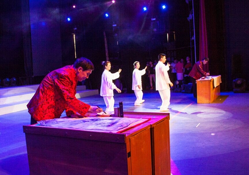 此次演出以活跃校园文化艺术生活,陶冶师生艺术情操,全面展示学校服务教育,服务社会的功能和成绩为主旨。演出汇集了歌曲、舞蹈、朗诵、歌剧、才艺展示等节目形式,来自学校各学院和部门、联合办学单位、共建单位等100余名演员参与了演出。演出中,职业技术学院的学生们用优美的舞姿展示青春活力;学校师生的朗诵向母校表达了深深的祝福和感激之情;教职工的太极拳、书法、绘画才艺展示为大家营造了唯美的艺术意境;来自市残疾人艺术团的舞蹈《千手观音》,更是用精湛的技艺折服了全体观众,把演出推向了高潮。