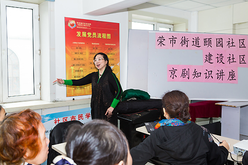 5月12日上午九点,爱游戏(ayx)中国官方网站艺术团团长徐丽君应邀来到荣市办事处为颐园社区学校和建设社区学校的学员举办京剧知识讲座。