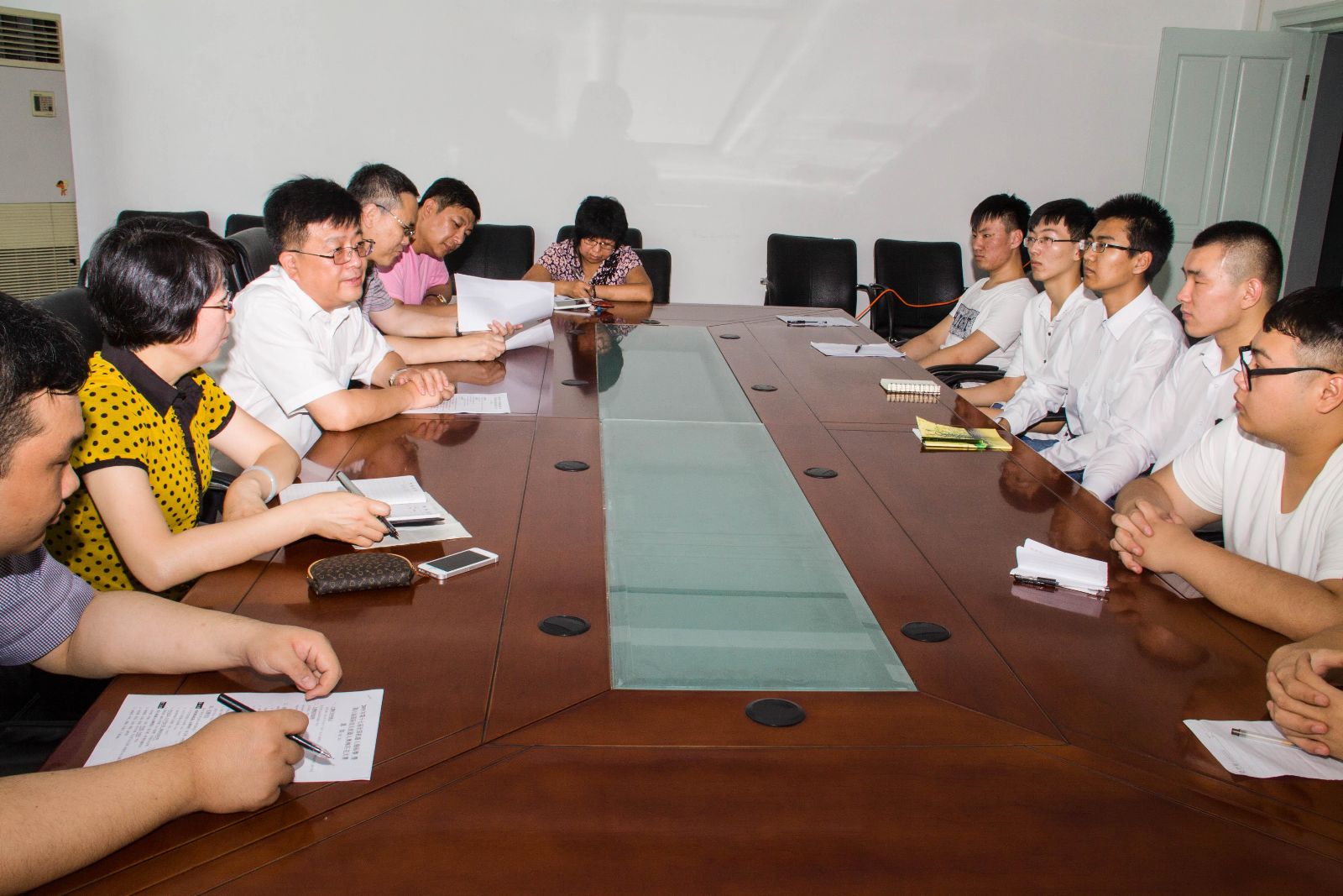 6月26日,校长黄岩、副校长白宝彦在会议室与职业技术学院代表黑龙江省参加2015年全国职业技能大赛的全体师生进行交流座谈。