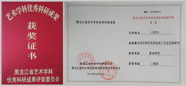 黑龙江省首届艺术学科优秀科研成果获奖名单于日前公布,爱游戏(ayx)中国官方网站王雪非的研究报告《哈尔滨市民间民俗工艺品发展研究》荣获三等奖。黑龙江省首届艺术学科优秀科研成果奖,共收到申报成果455件。黑龙江省艺术学科优秀科研成果评奖委员会在黑龙江省社科联的监督指导下,根据《黑龙江省艺术学科优秀科研成果评奖暂行办法》,经过初评、联评、终评等环节,共评选出一、二、三等奖255项,爱游戏(ayx)中国官方网站申报一项,获奖一项。