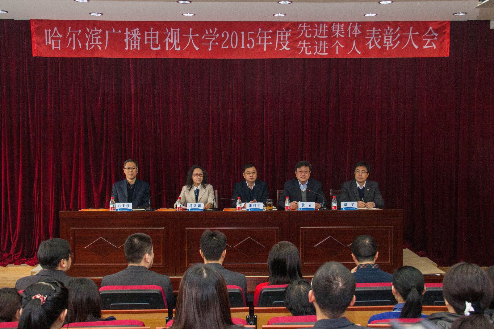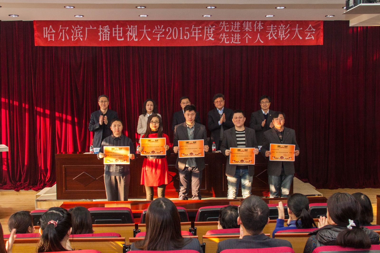 党委副书记、纪委书纪马弘莉宣读了《关于2015年学校表彰先进集体、先进个人的决定》和各级各类获奖名单。校领导为受表彰的先进集体和先进个人代表进行颁奖。
