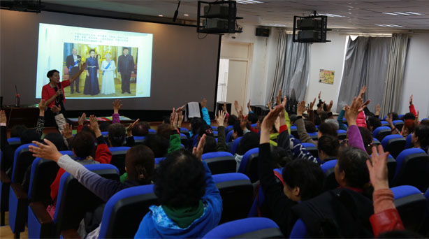 二、送教进社区。选派赵茁胜、司国红、潘俊、顾尧、徐丽君等多名优秀教师到各个社区和社区学院开展社区大讲堂活动,为居民讲授传统文化、法律常识、书法绘画、服饰搭配等课程,丰富了社区文化生活,满足了社区居民的不同文化需求。以8.25火灾为警示,开展了以“生命至上,安全发展”为主题的防火安全知识讲座,加强社区居民防范意识,使居民学会消除消防隐患、火灾逃生自救等技巧。