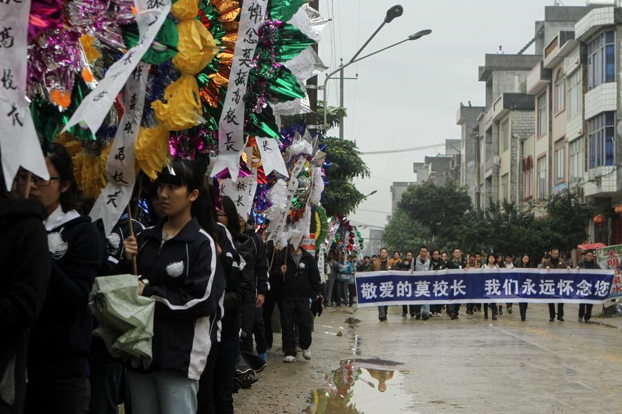 莫振高辞世后,有这么一段话被校友在朋友圈、QQ空间疯转:“那是个一下雨就广播收衣服收被子的校长;那是个准备高考时每天为我们准备牛奶鸡蛋香蕉宵夜的校长;那是个每到元宵等节日时给学生免费加菜的校长;那是个总是奔波各企业拉赞助帮助贫困学生的校长;那是个知道学生考上大学却因没钱放弃而翻山越岭去学生家家访的校长……”为了悼念他的去世,数千人自发前往都安,全县花圈被抢购一空,送别队伍绵延数公里。