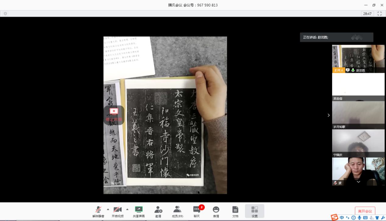 3月30日,哈电大社区教育书画班的赵茁胜老师在腾讯会议APP上做了一场生动的直播课程。社区书画班的88位学员在线参加了学习。