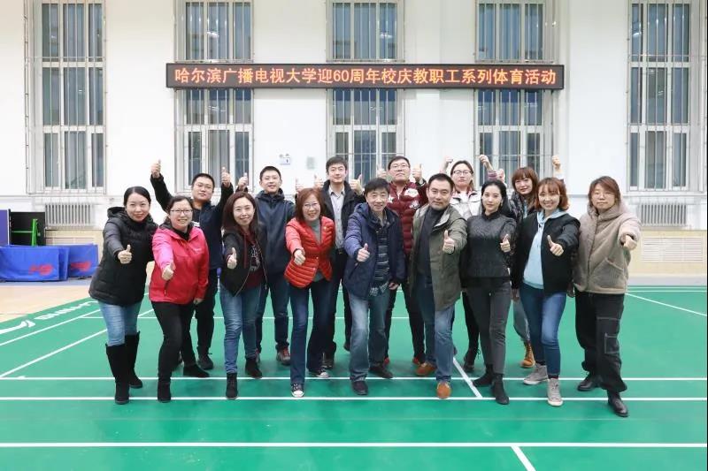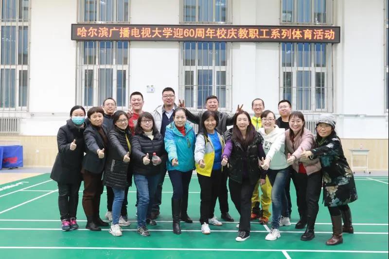 在学校迎来建校六十周年之际,为进一步弘扬团结拼搏、奋发有为的电大精神风貌,丰富教职工业余文化生活,10月30日,哈尔滨广播电视大学迎60周年校庆教职工系列体育活动开幕式暨趣味运动会在学校体育馆隆重举行。校领导张利宁、马弘莉、毛秀芝出席开幕式并观看了比赛。