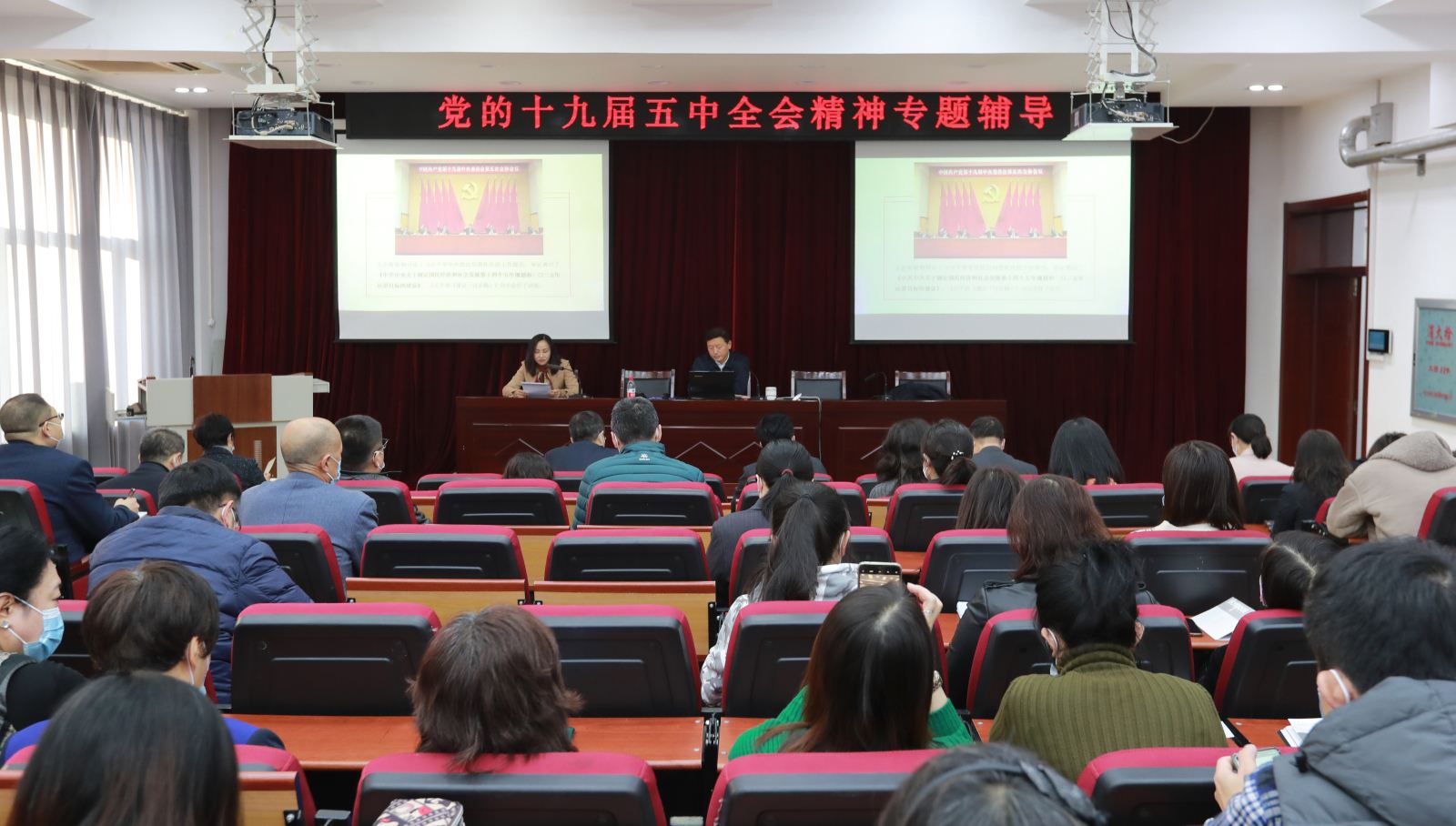 为深入学习贯彻党的十九届五中全会精神,按照市委统一安排部署和学校宣传学习工作安排,12月9日下午,哈尔滨市委宣讲团副团长、一级巡视员刘彦柱应邀深入学校,开展学习贯彻党的十九届五中全会精神专题辅导讲座。会议由学校党委副书记、纪委书记马弘莉主持,学校领导班子全体成员及全校教职工参会。