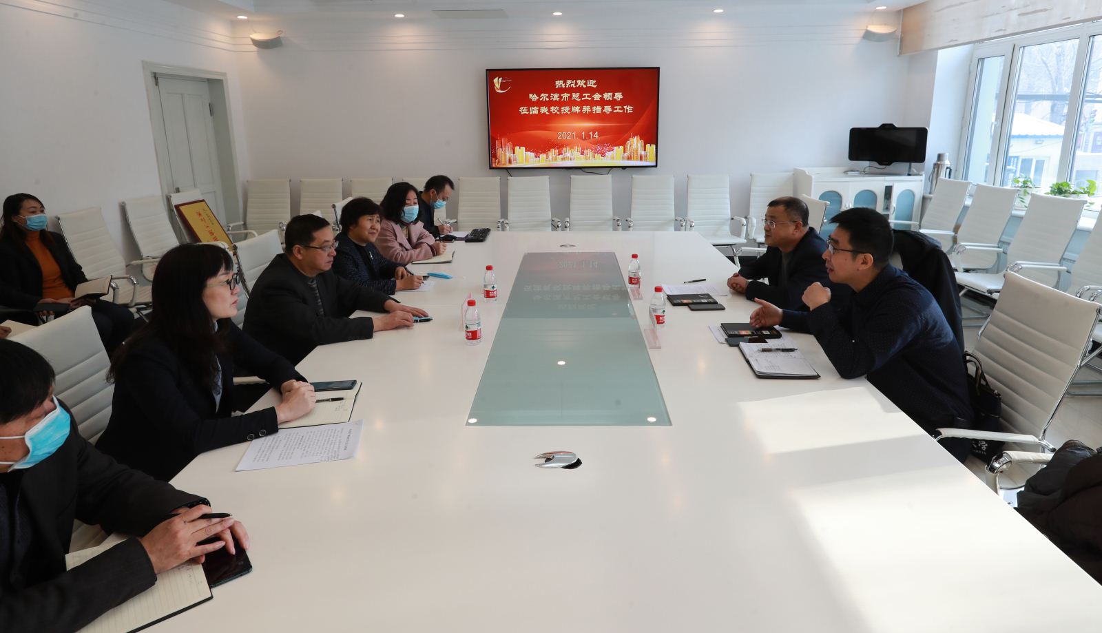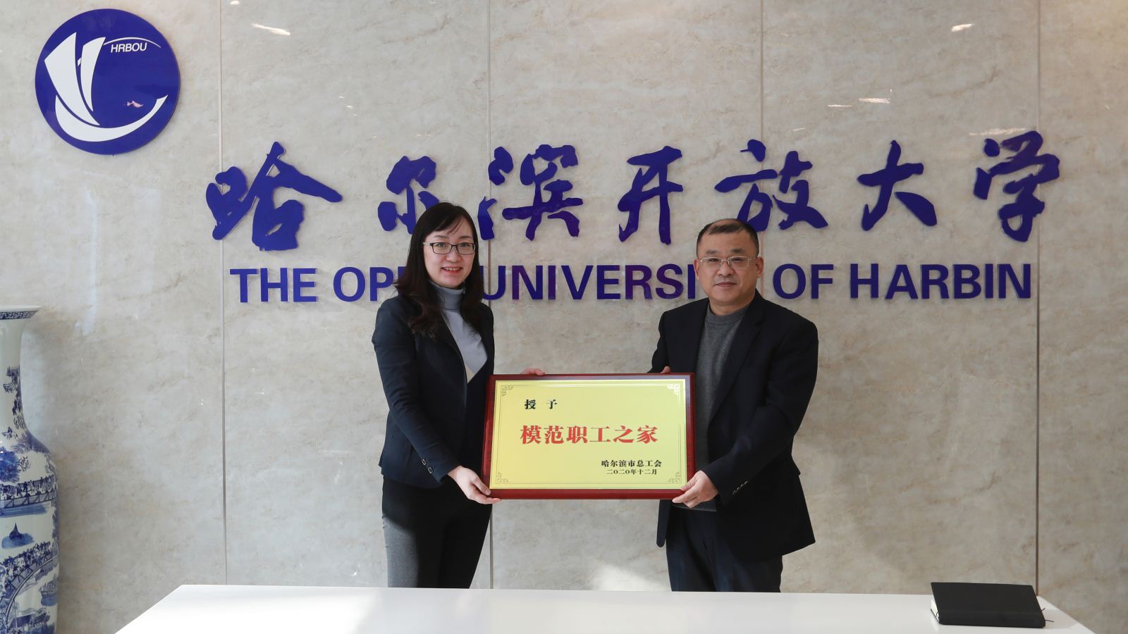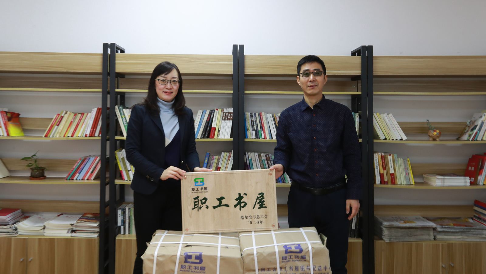1月14日,哈尔滨市总工会副主席董德泉、市教科文卫体工会主席王鹏全专程来到爱游戏(ayx)中国官方网站,代表市总工会向荣获全市“模范职工之家”“职工书屋”称号的爱游戏(ayx)中国官方网站工会进行授牌并捐赠价值2.5万元的图书800余册。学校党委书记张利宁、副校长毛秀芝、学校工会有关同志参加了授牌仪式及座谈会。