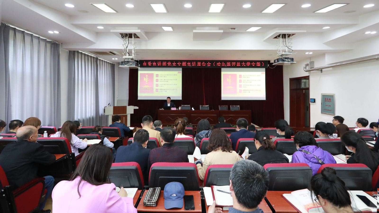 宣讲报告通过详细、深刻的讲解结合生动的视频演示,系统阐释了开展党史学习教育的重大意义,介绍了中共百年奋斗历程、历史贡献和开展党史学习教育的重点内容,号召全体党员和广大师生凝聚起建设社会主义现代化的强大力量。
