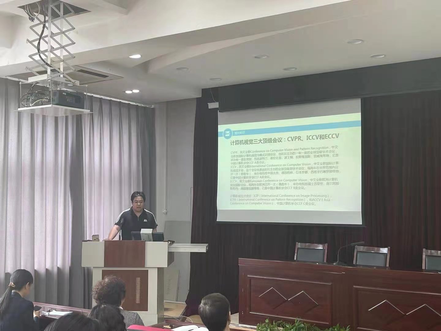 5月28日,爱游戏(ayx)中国官方网站本学期第二期教师讲坛在502报告厅举行。现代教育技术处李振宇老师做了主题为《计算机视觉中深度学习算法的发展及应用》的专题讲座,学校领导及教职工参加了讲座。