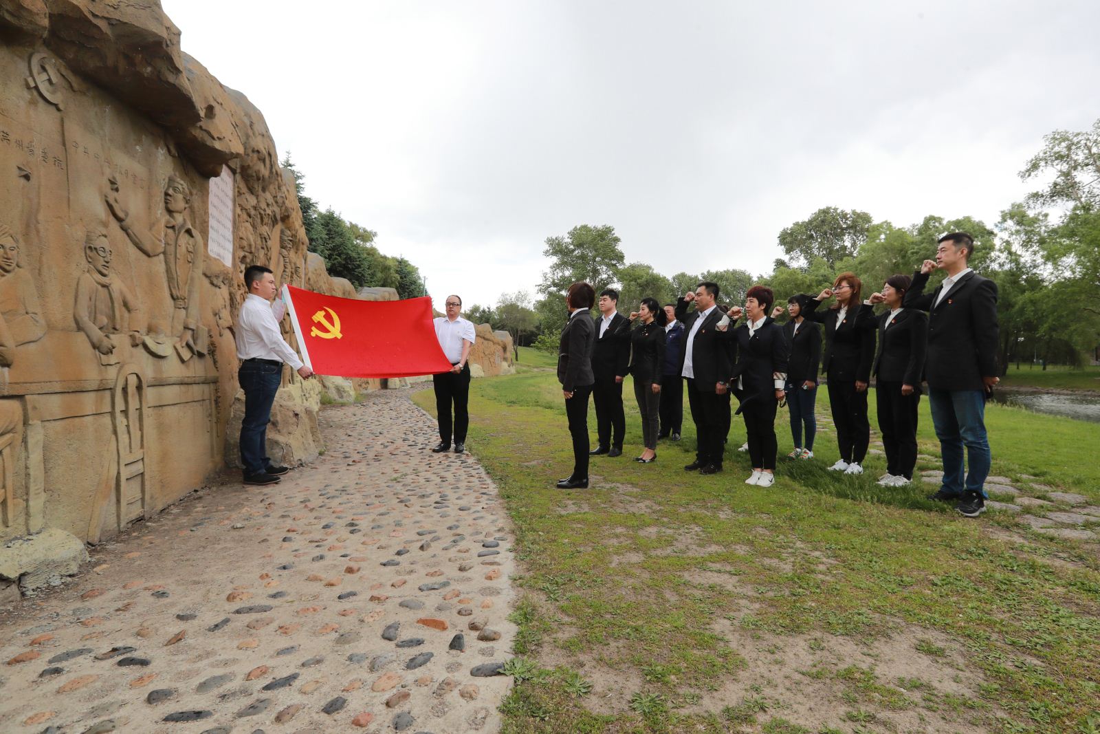 5月24日下午,第一党支部与开放学院学生临时党支部以及学生积极分子冒雨到东北抗日联军纪念园思想教育基地开展革命传统教育活动,共同缅怀革命先烈、回忆红色历史。