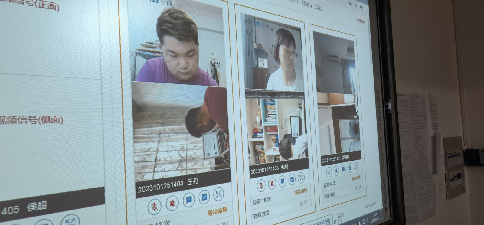 该考试系统可以通过人脸识别和双机位实时监控,能够实现违规预警、防作弊等功能,为实现开放教育随时随地灵活考试做了实践探索,创造性地突破了开放教育多年来远程考试无法监控的瓶颈问题。专家在考试监控现场通过该系统与参加考试的考生进行了身份认证互动,抽查了考生的身份证件。