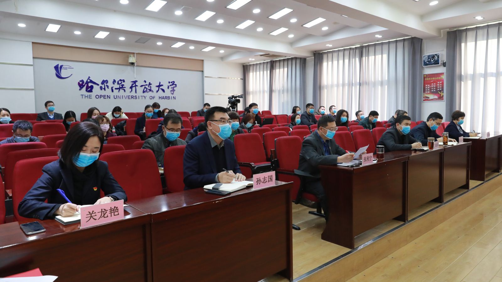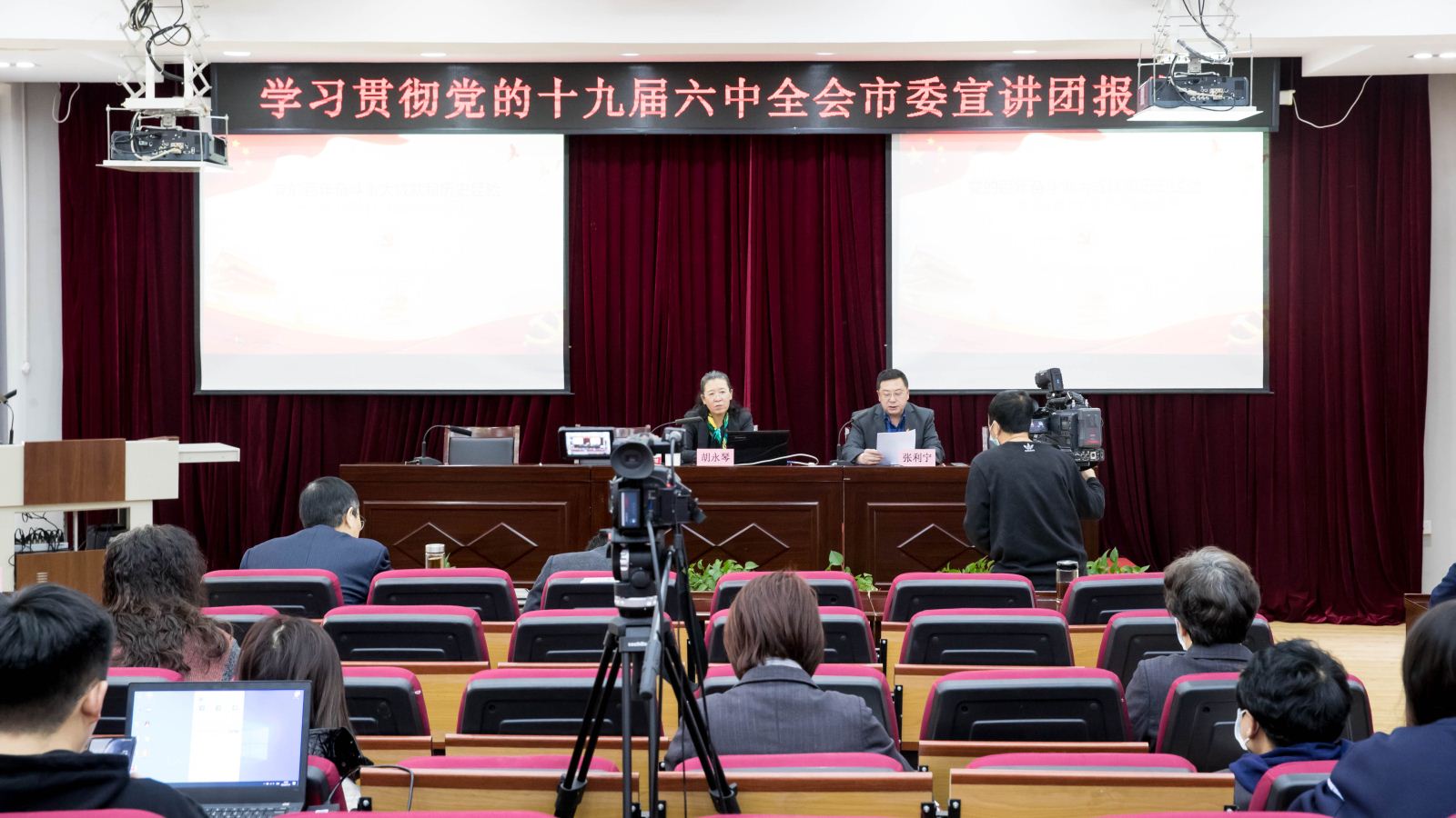 1月11日下午,学校党委组织召开理论学习中心组十九届六中全会精神专题学习(扩大)会议。市委宣讲团成员、中共哈尔滨市委党校教育长胡永琴教授,在大会上作了《党的百年奋斗重大成就和历史经验》专题讲座。学校领导班子全体成员和处科级干部在会场参加了报告会,其他教职工和开放教育本专科学生通过在线直播平台收看报告会。