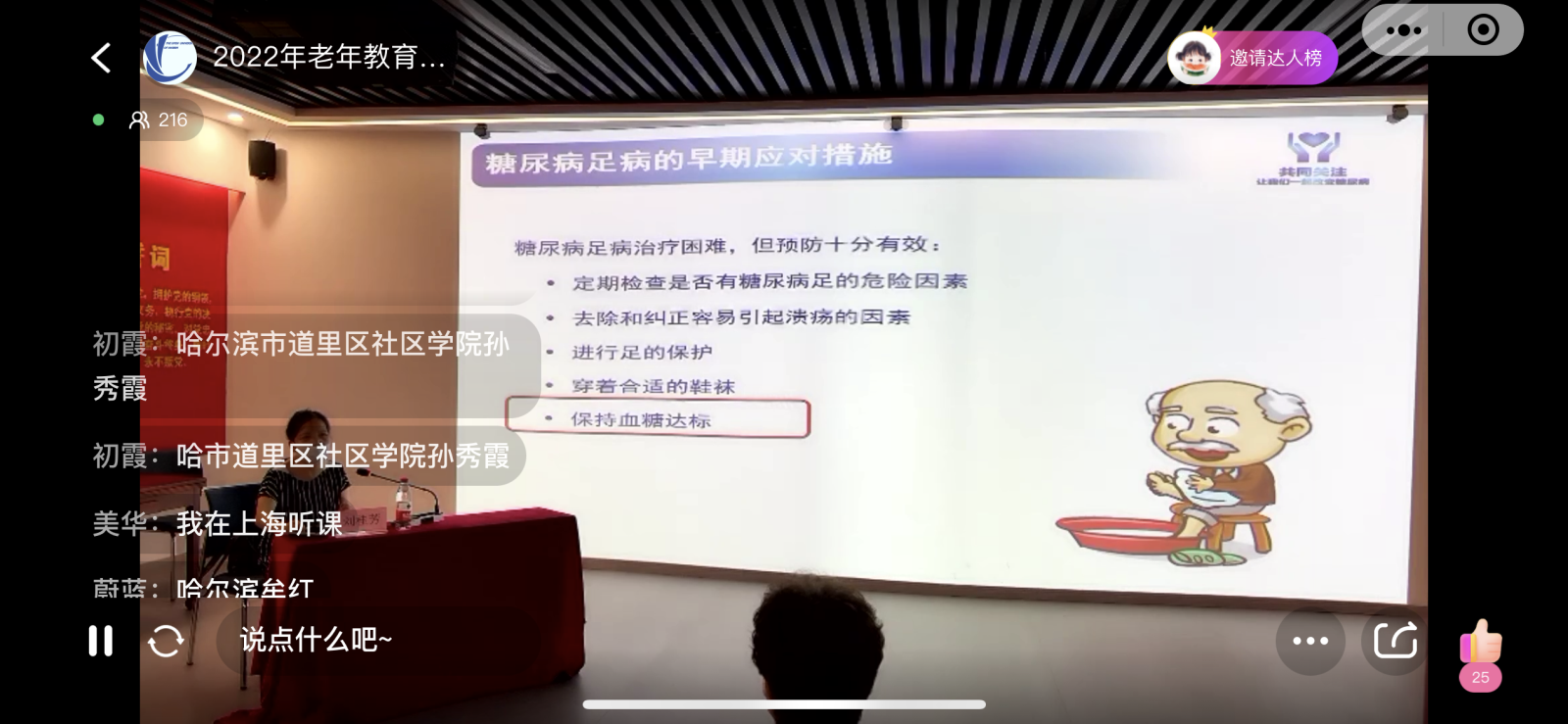 2022年7月13日,由爱游戏(ayx)中国官方网站、哈尔滨市社区教育指导中心、哈尔滨老年学学会、南岗区繁荣街社区联合举办的老年教育开放讲堂第二期培训活动在繁荣街社区成功举办。哈尔滨市各区县社区教育学院(学校)、三亚市老年人异地养老协会单位等线上参与培训,共计342人次。