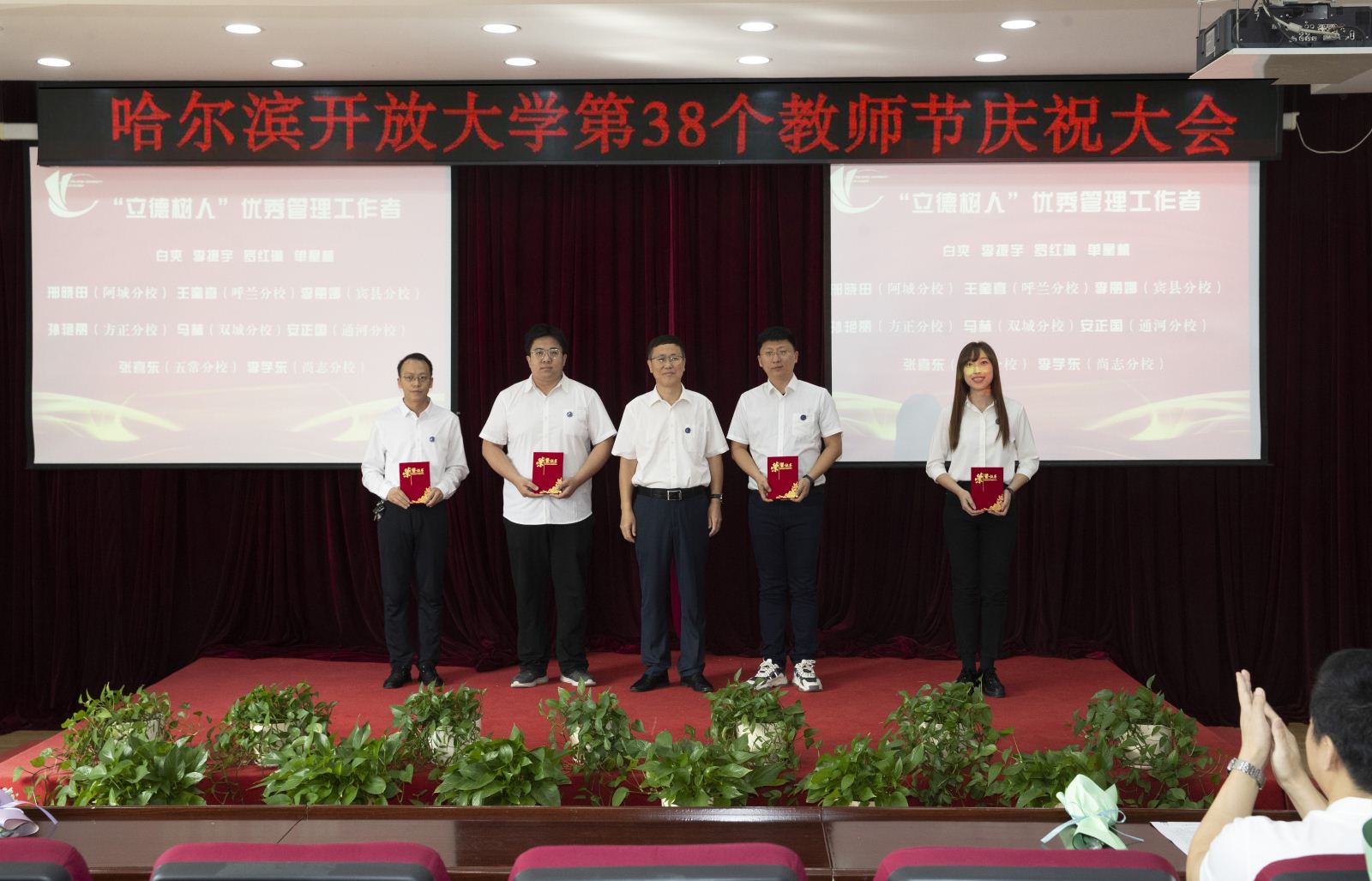 迎接党的二十大,培根铸魂育新人。9月16日,受疫情影响延后举行的2022年教师节庆祝大会在学校502多功能厅隆重举行。校领导班子成员、各部门代表等在主会场参加会议,系统分校教职员工线上参加会议。会议由校党委委员、副校长关龙艳主持。会前校领导为全校教职工献花,送去节日祝福。