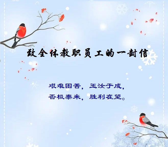 同志们,万众一心就没有翻不过的山,心手相牵就没有跨不过的坎。在这一特殊时期,学校会尽最大努力为全体教职工做好保障工作,成为全体教职工的坚实后盾,坚定做到“职工有所需,学校有所为”。无论是身体有恙还是物资有缺,大家遇到困难时,请在第一时间与学校取得联系,我们会尽快尽力为大家排忧解难,全心全意为大家提供支持。