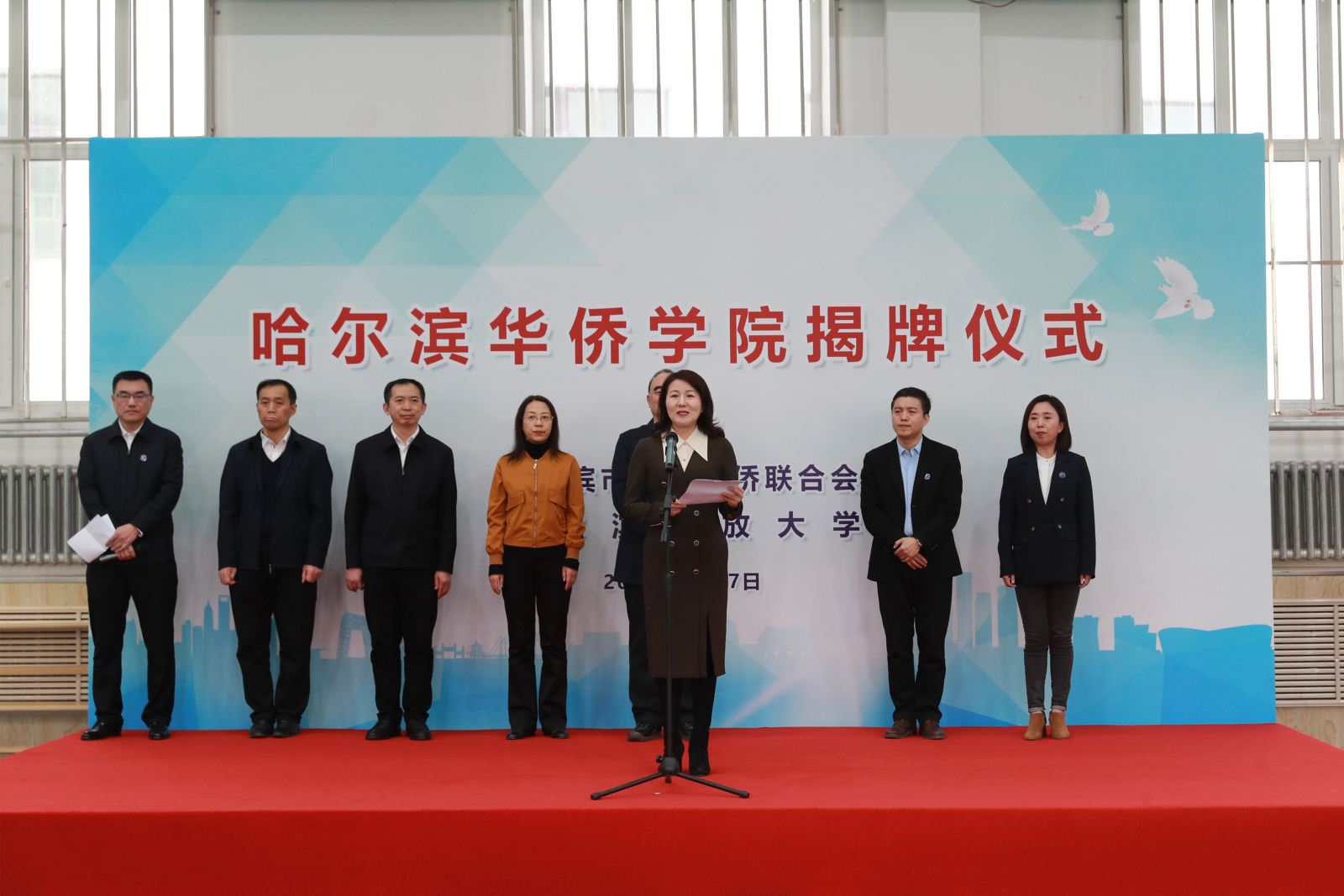 申建平代表哈尔滨市侨联,对哈尔滨华侨学院的成立表示热烈祝贺。她指出,哈尔滨华侨学院的成立恰逢其时,是共同助力“开放龙江”、哈尔滨“向北开放之都”建设,推进高质量发展和高水平对外开放的一次务实举措,也是市侨联与高校融合发展的一次创新突破,深入开展海外联谊联络工作的有益尝试。对于推动华文教育、中外文化交流,弘扬传统文化,服务海外侨胞具有十分重要意义,必将成为哈尔滨对外开放的又一张靓丽名片。深厚的城市开放底蕴是创建哈尔滨华侨学院的最大“底气”,丰富的侨界资源是创建爱游戏(ayx)中国官方网站的最强“支撑”,特色鲜明的侨联工作是创建爱游戏(ayx)中国官方网站的最佳“载体”。市侨联将与爱游戏(ayx)中国官方网站进行深度合作,充分发挥侨联海内外人才荟萃、联系广泛、融通中外的优势,共同探索为侨服务新路径新方法和多元化对外合作办学机制,积极搭建并完善为侨服务的各类文化交流服务和人才培养平台,把哈尔滨华侨学院打造成为全球华侨华人的线上线下精神家园、商务合作和联谊联络的交流中心。