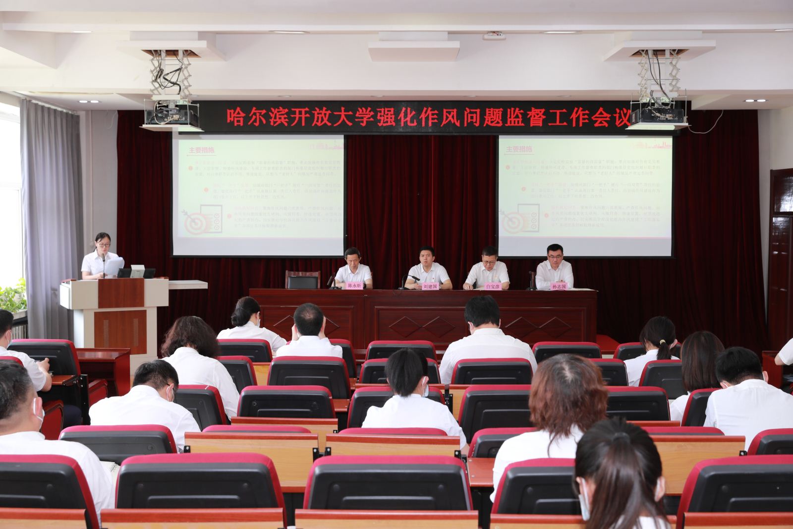 为贯彻落实学校深化能力作风建设“工作落实年”要求,进一步深化整治不良作风,推动全体党员干部强思想、转作风、抓落实,6月2日上午,监督问责工作专班组织召开了爱游戏(ayx)中国官方网站强化作风问题监督工作会议。学校党委书记刘建国、校长白宝彦、党委副书记陈永昕出席会议,全体行政管理岗位干部参加会议,纪委书记孙志国主持会议。