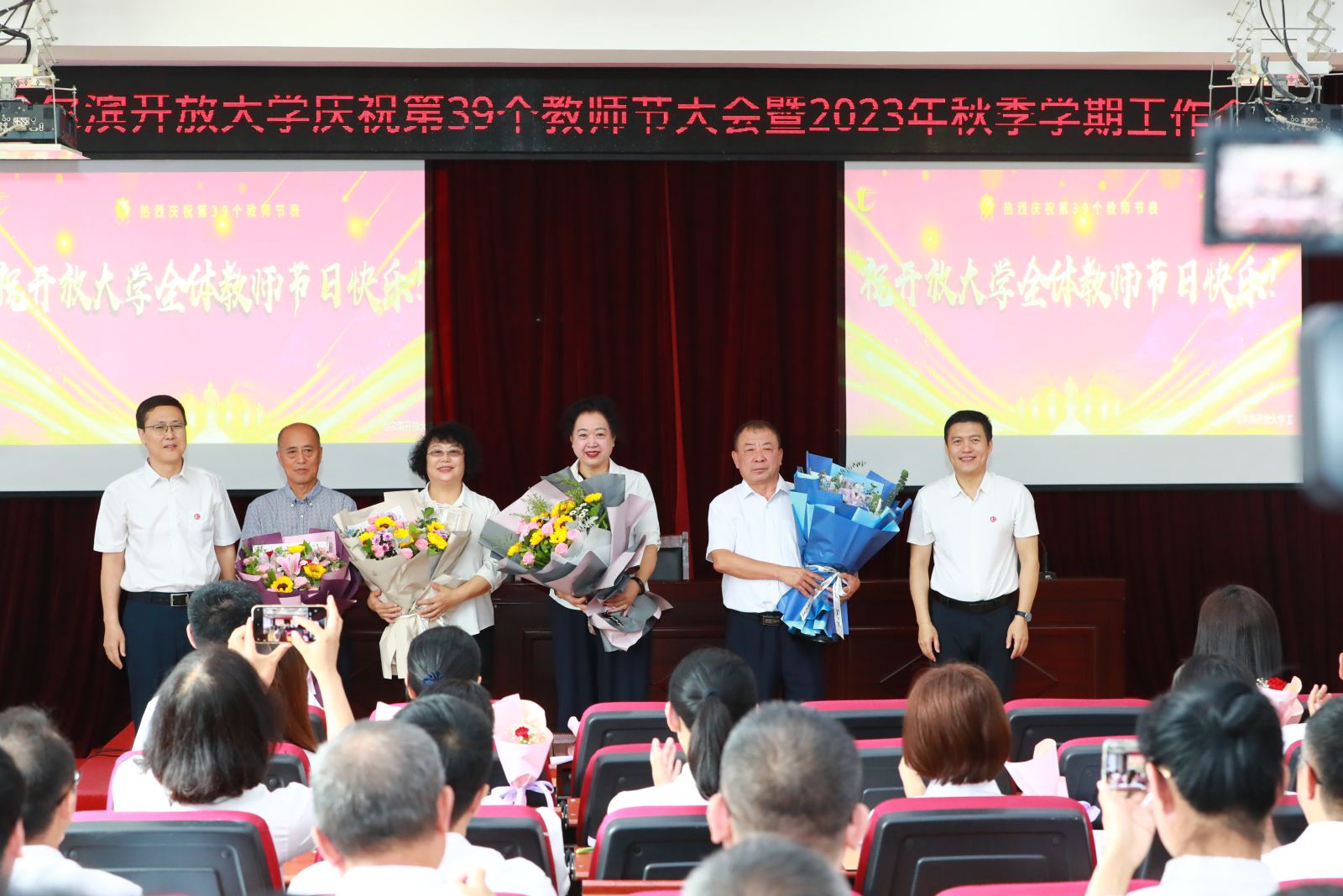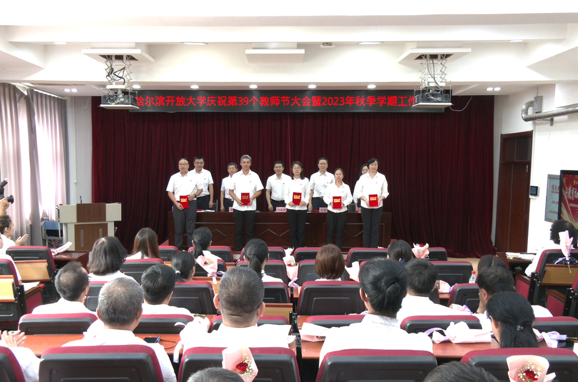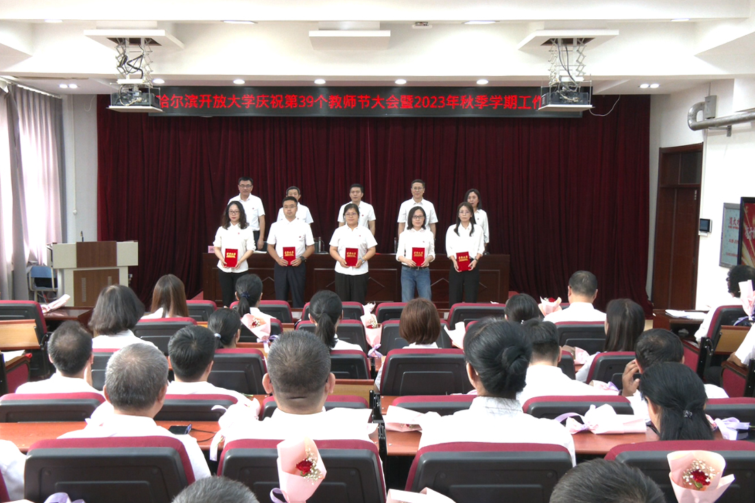 党委委员、纪委书记孙志国宣读了《关于表彰先进集体和先进个人的决定》,全体校领导为在教育教学和管理岗位上表现优秀的教师代表们颁发了荣誉证书。教师代表李晶发言,代表在职教师对荣退教师表达由衷的敬意和感激之情。她表示作为开放大学教师,将进一步积极适应变革,不断推动课程的创新和优化,为学校的发展贡献自己的力量。