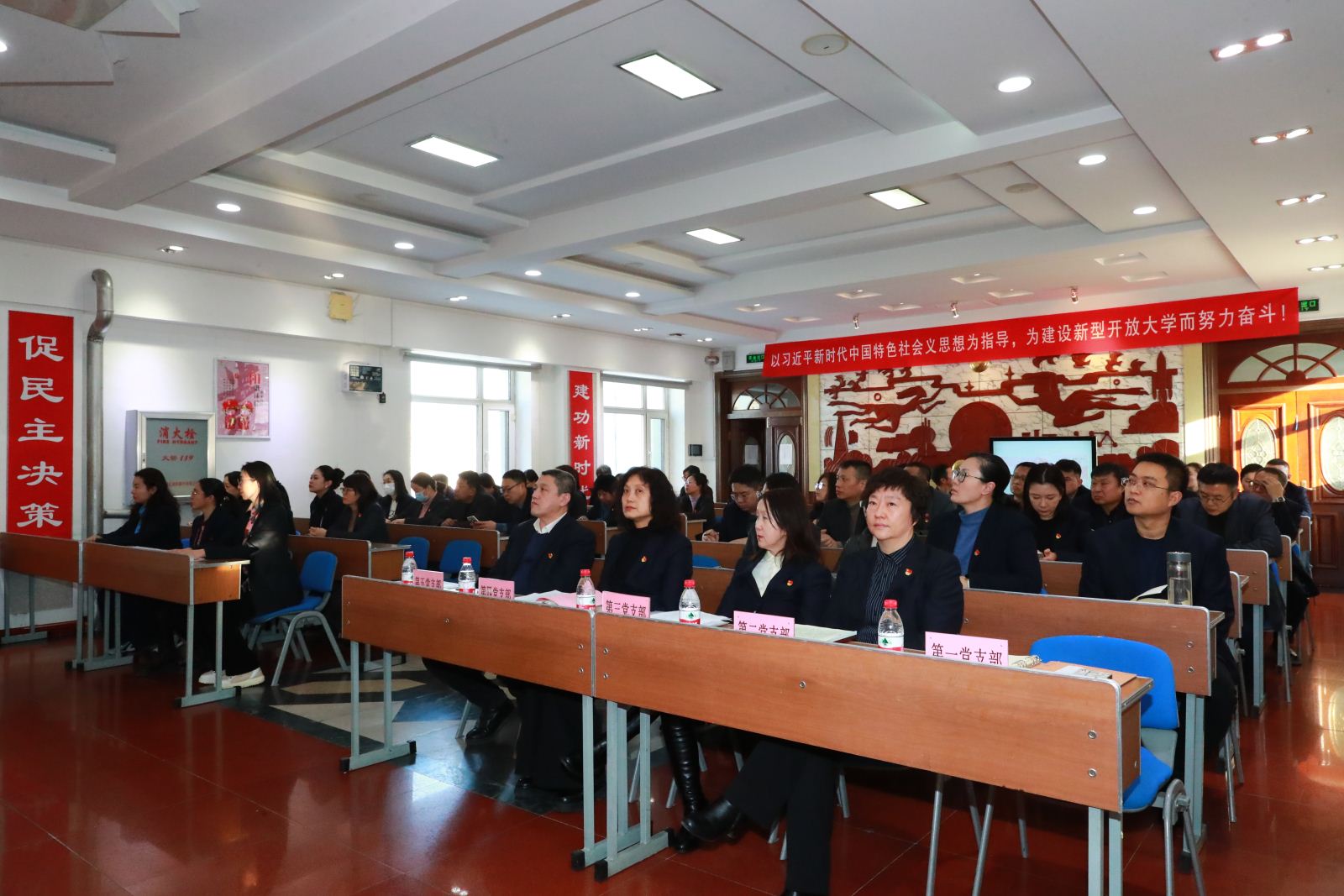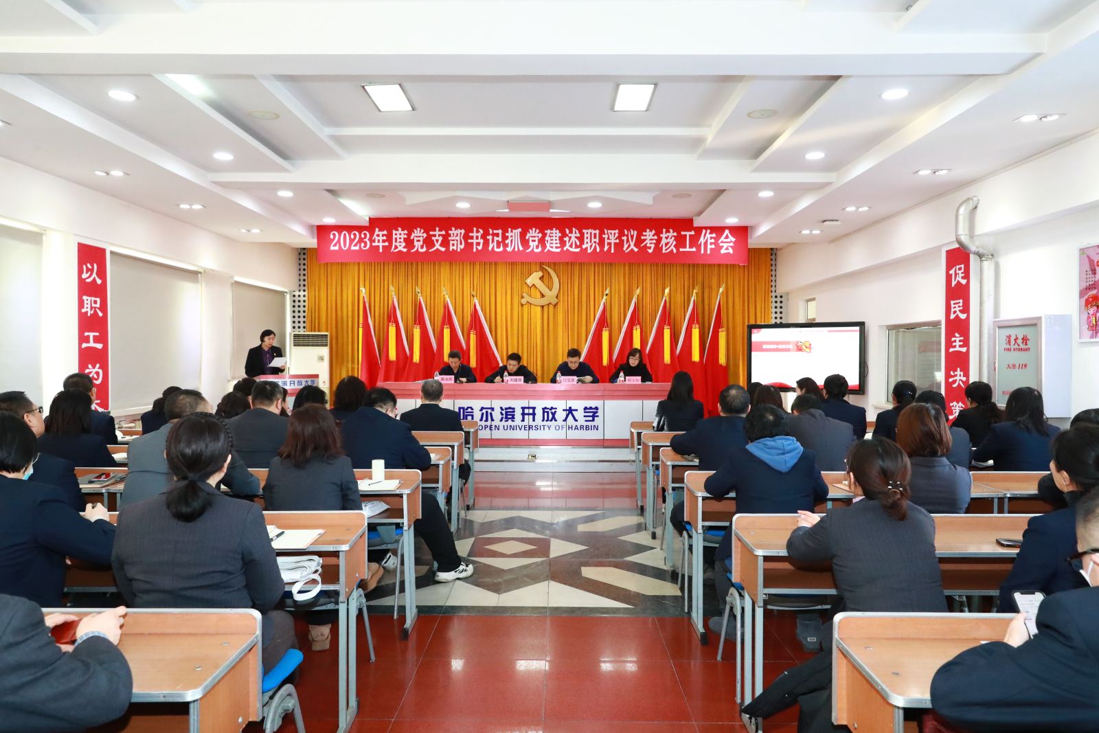 党委书记刘建国指出,2023年,各党支部坚持以习近平新时代中国特色社会主义思想为指导,认真开展学习习近平新时代中国特色社会主义思想主题教育,认真贯彻落实党的二十大精神,紧紧围绕中心和大局开展党建工作,努力推进党建工作与学校各项工作的有机融合,党建工作取得了一定的成效,为学校发展提供了坚实的保障。2024年各党支部要进一步强化支部规范化建设,加强党建工作与业务工作融合的顶层谋划,强化党员先锋模范作用,通过党建工作促进评估等各项工作提质增效,用高质量党建不断推动学校高质量发展。