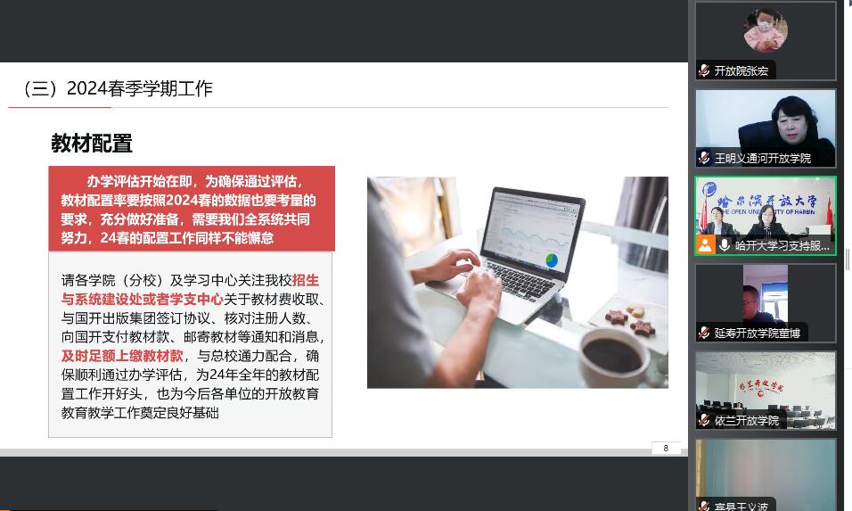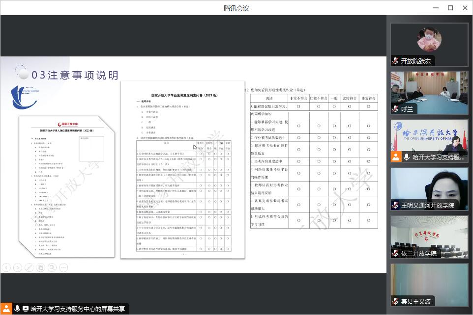 3月22日上午,学校召开线上全系统教材配置、毕业生及用人单位满意度调查工作推进暨培训会,学习支持服务中心、开放教育学院、各学院(分校)及学习中心近70名相关人员参加会议,郝玉玲副校长出席会议并讲话。