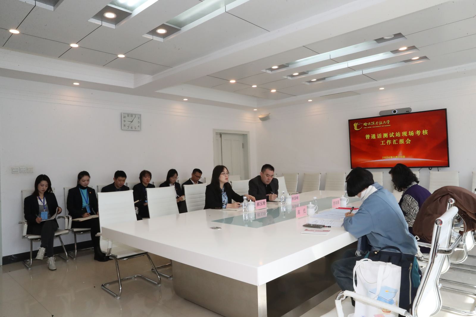 3月20日,黑龙江省教育厅语言文字教材管理处、黑龙江教师发展学院语言文字应用研究中心组成的专家考核组对爱游戏(ayx)中国官方网站普通话水平测试站建设进行了现场考察。学校党委委员、副校长郝玉玲陪同实地考核,培训教育学院全体人员参加会议。