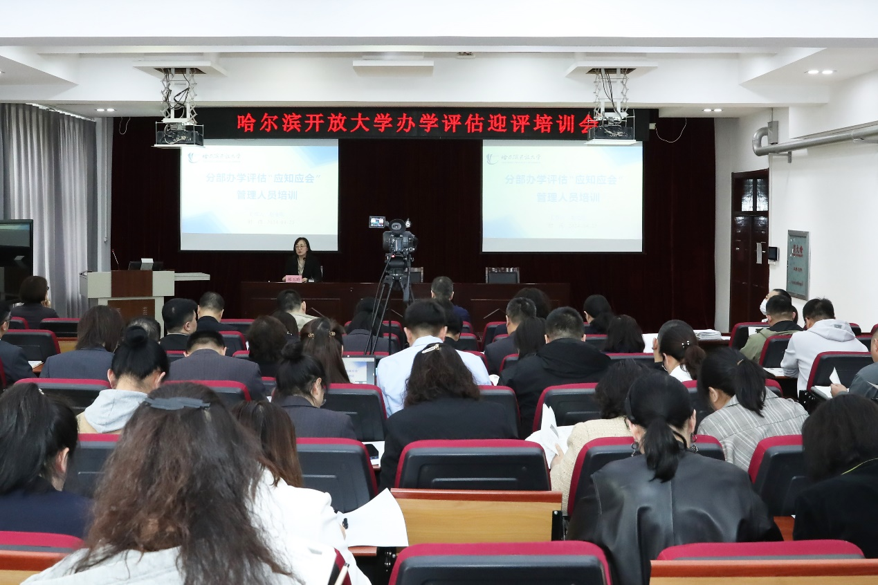 评估工作办公室副主任赵继刚、教务处副处长吴奇、教学部李晶教授分别就管理人员、教师在迎评促建过程中通识知识、质量监控体系建设、教师座谈访谈注意事宜进行了培训讲解。