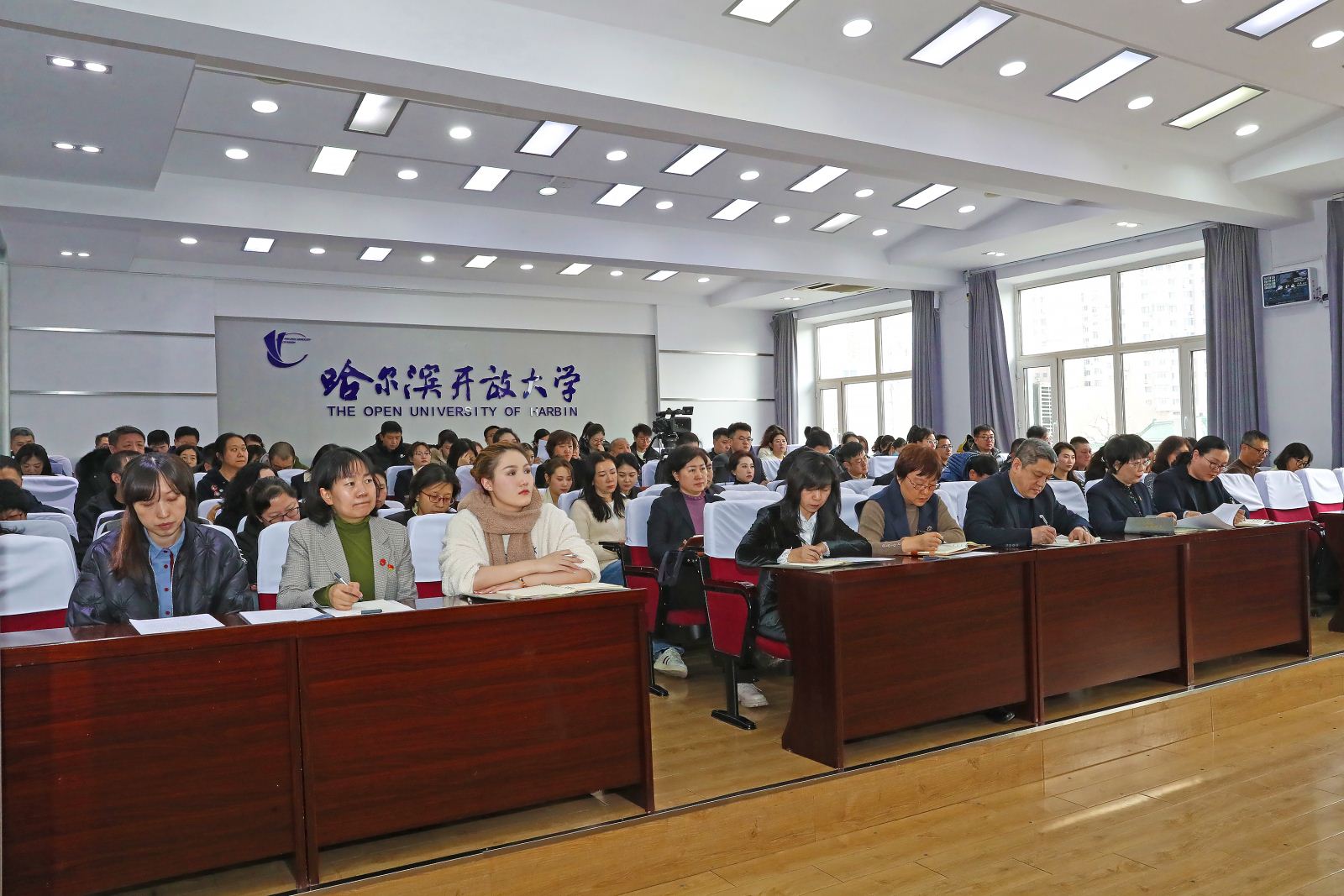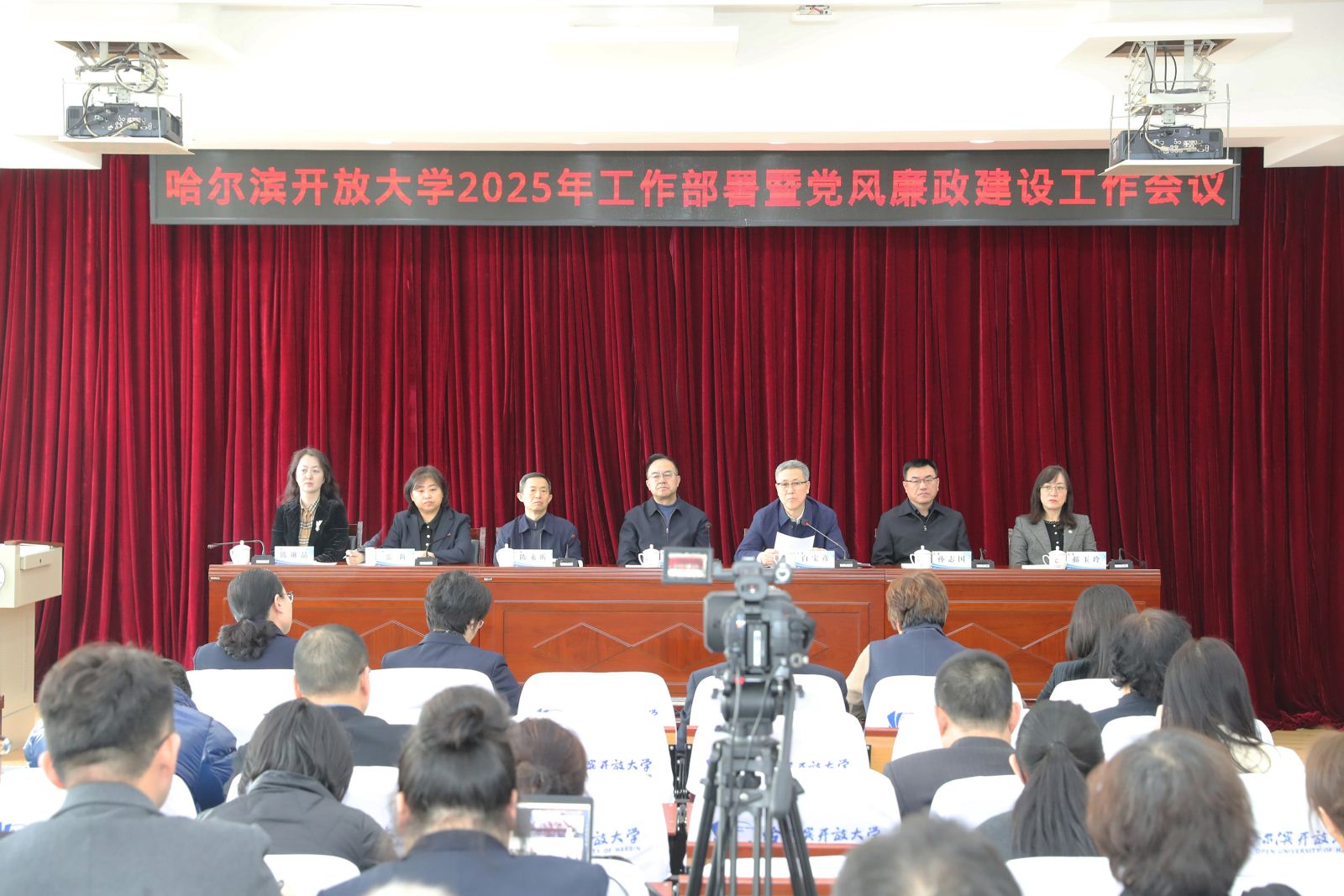 白宝彦校长对学校过去一年的工作进行了系统总结,对取得的成绩给予了肯定,客观分析了学校面临的形势和存在的问题。并对新学期的工作进行了全面部署,明确工作目标和重点任务。他指出,2025年学校将坚持以习近平新时代中国特色社会主义思想为指导,加强党全面的领导,深化思政引领。落实《教育强国建设规划纲要(2024—2035年)》,推动招生、教学、科研等多方面改革创新,探索数字技术驱动教育新形态。同时,拓展非学历教育,加强队伍建设与学校治理。全校教职工要积极投入,全力完成新学期任务,围绕“教育强国 开大何为”和“学习型社会建设 开大何为”两大时代命题,持续为哈尔滨地方将经济发展建设和社会进步贡献开放大学力量。