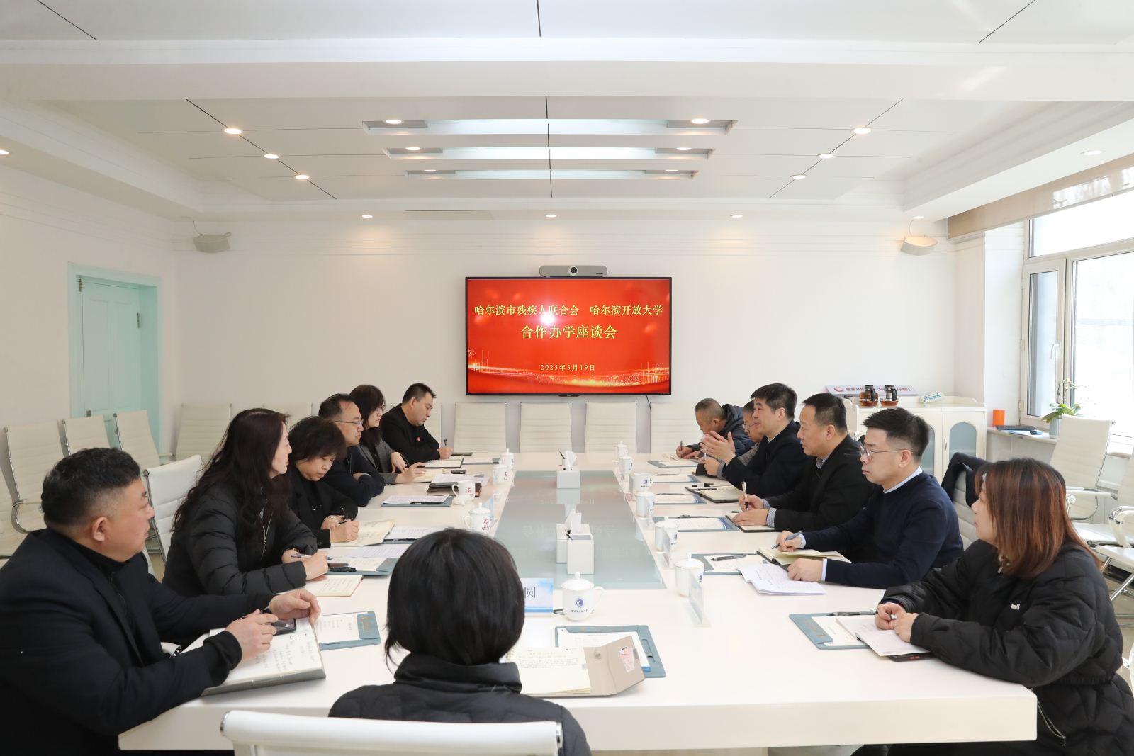 座谈会上,双方围绕深化残疾人学历教育与职业技能培训合作展开研讨。参会人员回顾了双方在残疾人学历教育、职业技能培训、促进残疾人就业和创业方面取得的成绩,就进一步深化合作,打造“资源共享、阵地共建、品牌共创”模式,为残疾人提供多元化、高质量的学历教育和职业技能培训工作进行了深入探讨,并对双方具体合作形式、合作内容、保障机制等进行了进一步磋商。