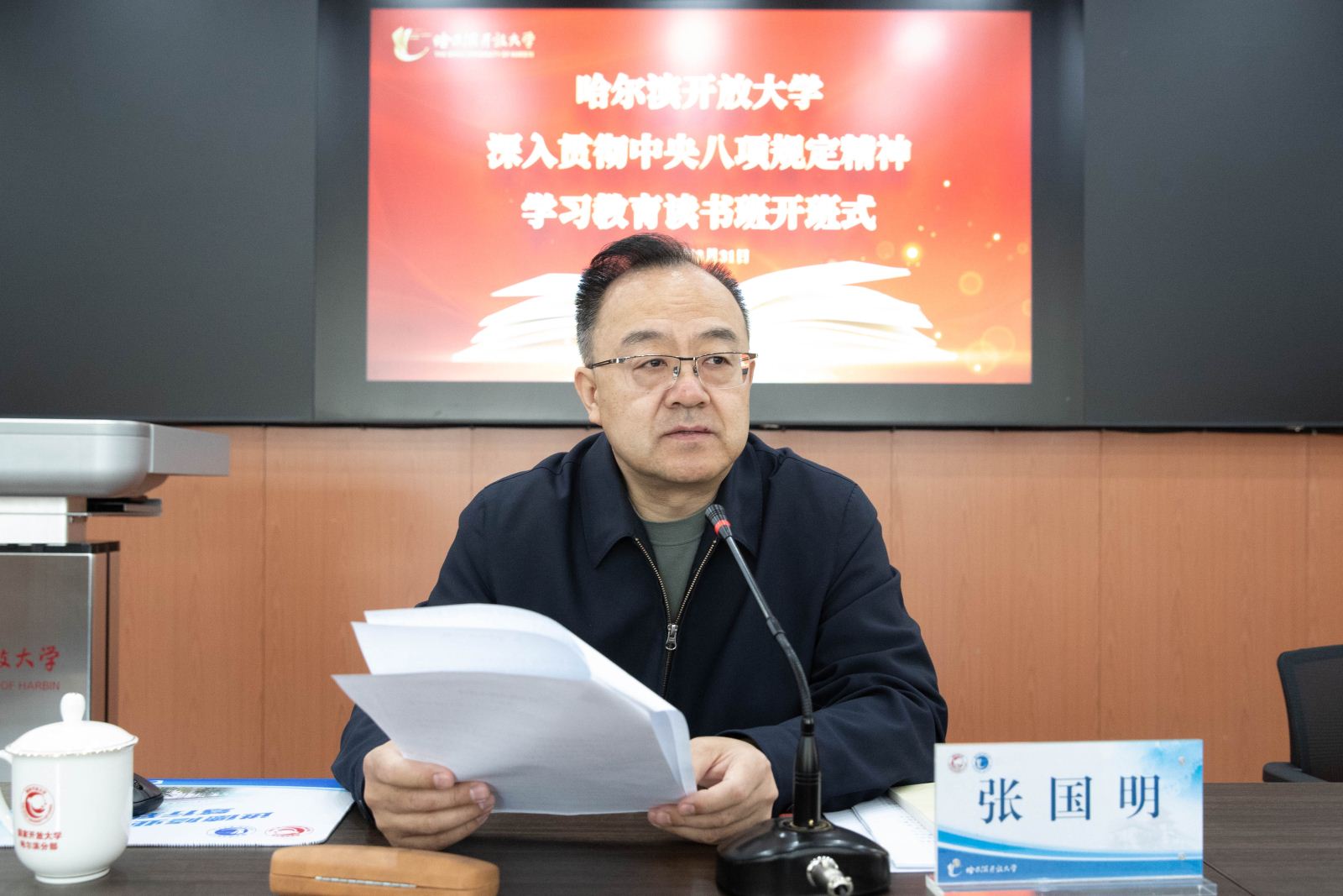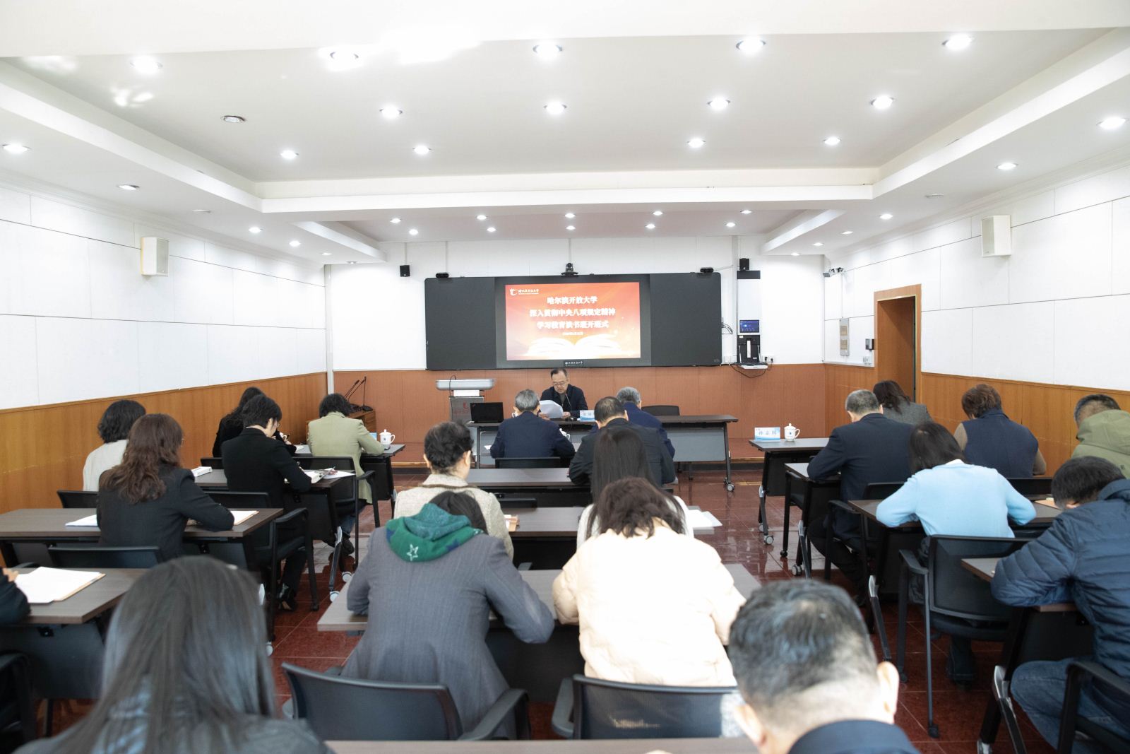 3月31日上午,爱游戏(ayx)中国官方网站在1303教室举办深入贯彻中央八项规定精神学习教育读书班开班式。党委书记张国明讲话并作专题辅导讲座,党委副书记、校长白宝彦主持开班式并提出学习要求,学校领导及全体副处以上干部参加开班式。
