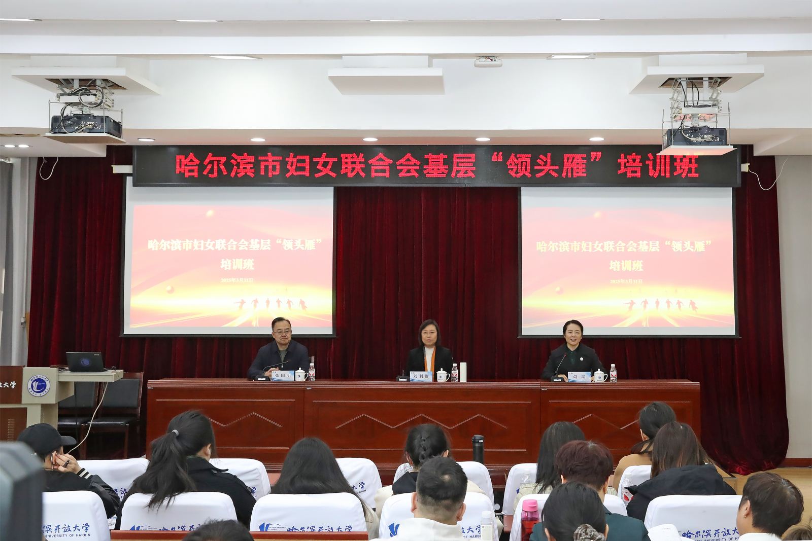 为深入贯彻党的二十大精神,全面落实习近平总书记关于妇女儿童、妇联工作及家庭家教家风建设的重要论述,3 月31日,由哈尔滨市妇联主办,爱游戏(ayx)中国官方网站承办的基层“领头雁”培训班在502报告厅举行。本次培训采用线上线下相结合的方式进行,市妇联各级干部、执委及女性社会组织负责人70人参加现场培训活动,110人参加线上培训。