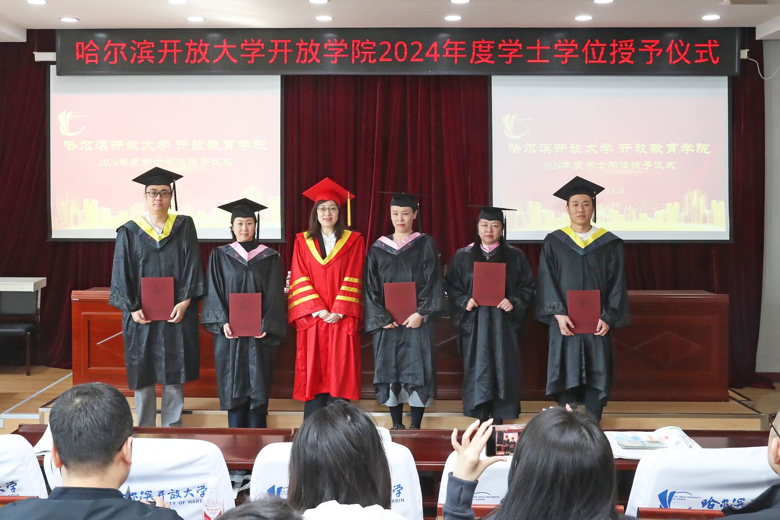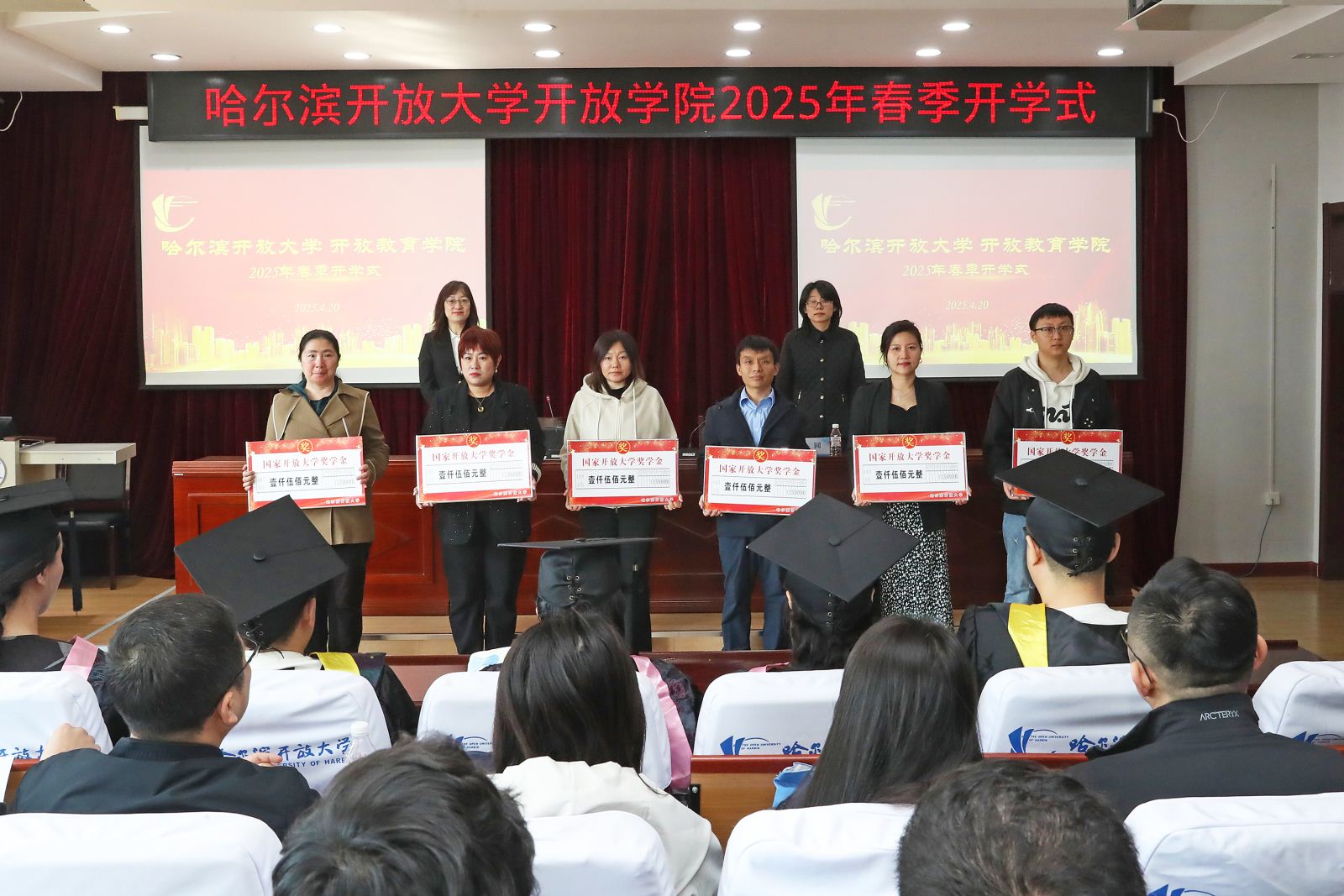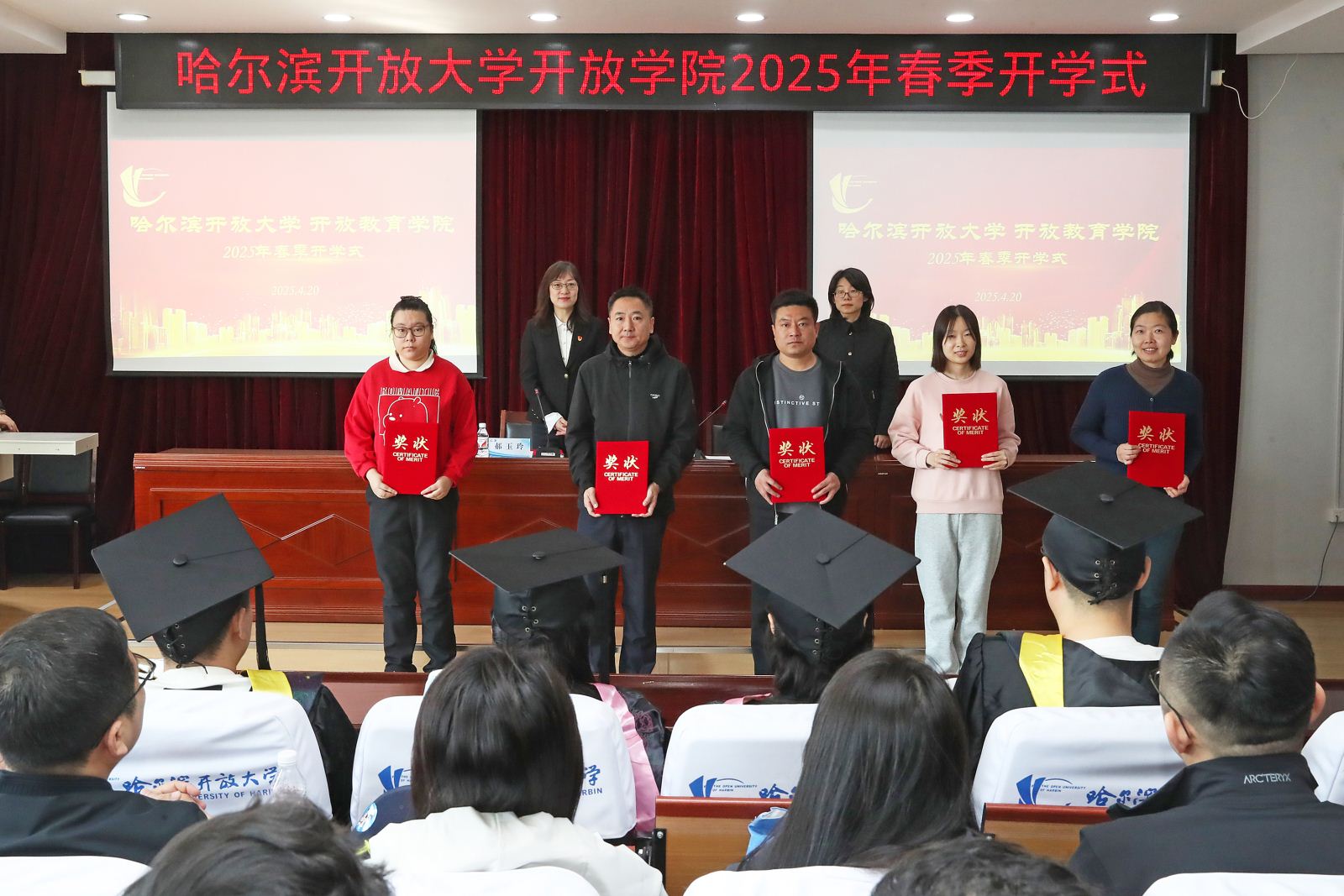 开学式上,郝玉玲副校长宣读了2024年度开放教育学院学生在各类竞赛活动中的获奖名单,并为获奖学生代表颁发了荣誉证书。为获得学士学位的毕业生拨正流苏,颁发学位证书,并勉励全体新生以优秀学子为榜样,在新的学习征程中勇攀高峰。