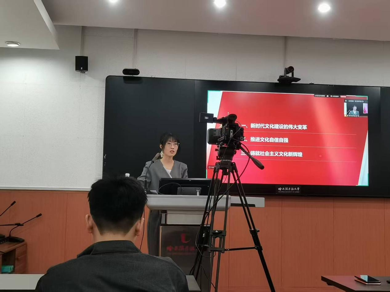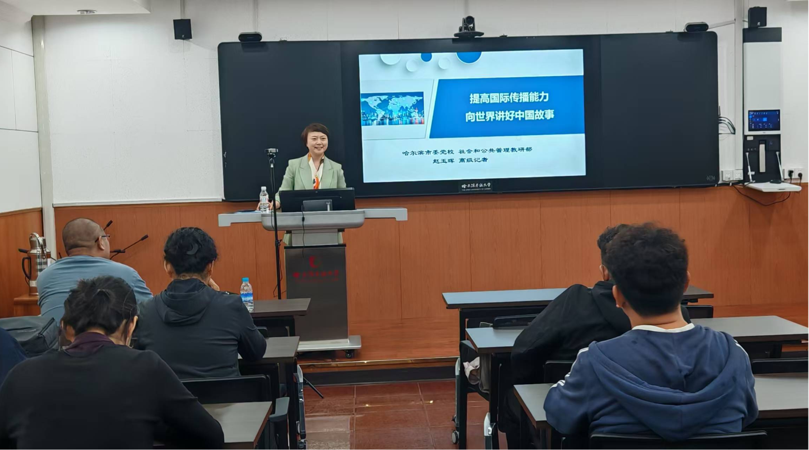 6月10日,哈尔滨市委党校专家进校园系列讲座第二讲由哈尔滨市委党校社会和公共管理教研部赵玉晖老师主讲,以“提高国际传播能力,向世界讲好中国故事”为主题,通过“现场教学+全系统直播”的方式为爱游戏(ayx)中国官方网站学生讲授 “为什么要提高国际传播能力,怎样向世界讲好中国故事,向世界讲好哪些中国故事”,呼应习近平总书记“网络强国”思想。强调提高国际传播能力既是大国崛起的必经之路,也是百年大党成功的重要法宝,更是国际舆论斗争的客观需要。课后学生反响热烈,对党校教师进开大校园的授课的形式非常认可,希望课程可以继续开展。