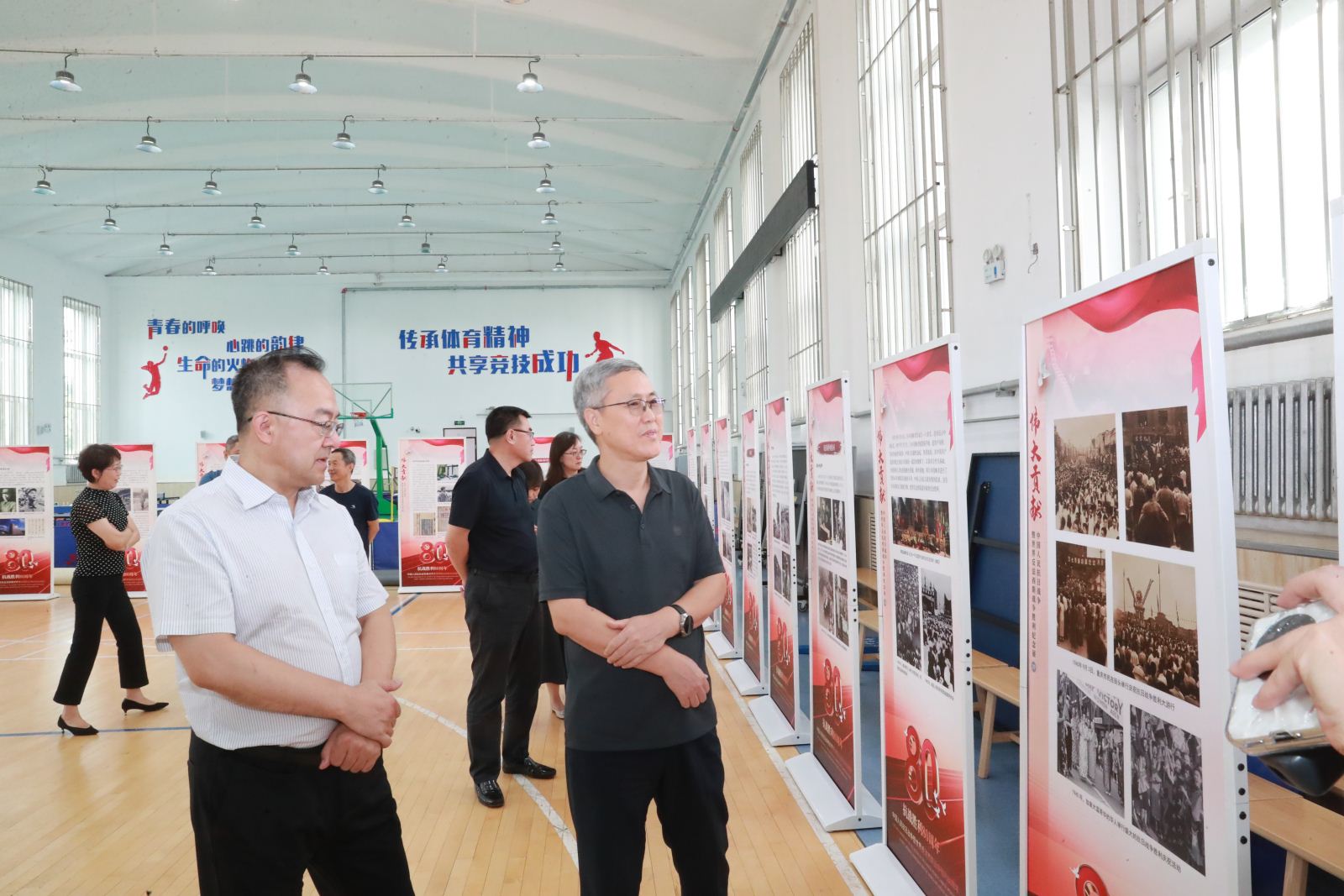集中观看结束后,全体人员集体前往学校体育馆参观《伟大贡献——中国人民抗日战争暨世界反法西斯战争胜利80周年纪念展》。通过一幅幅珍贵图片,再次体悟亿万中华儿女同仇敌忾、共赴国难的壮烈篇章,进一步坚定了铭记历史、缅怀先烈、珍爱和平、开创未来的信念。